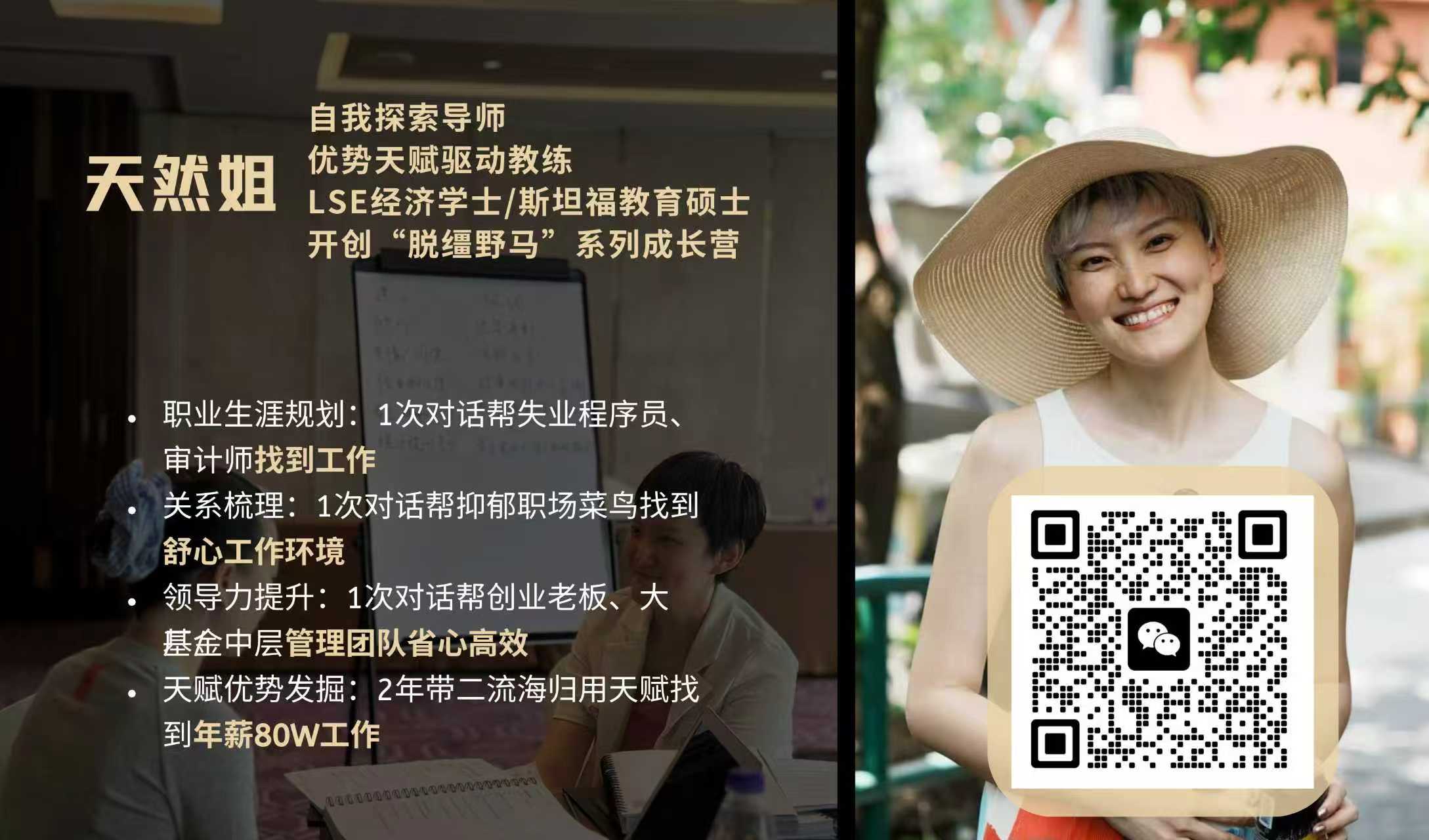 从精英教育后的迷茫到重新找到有能量的人生,天然不希望再看到任何一个独特而鲜活的人,被塞进“你应该”的模具里,在很多来找天然聊天的B站粉丝身上,她看到了粉丝身上给自己建起的无形空气墙。他们明明那么优秀,却在迷茫和内耗中磨损自己。天然姐希望通过教练对话,让每个人都能拥有改写自己人生剧本的能力。