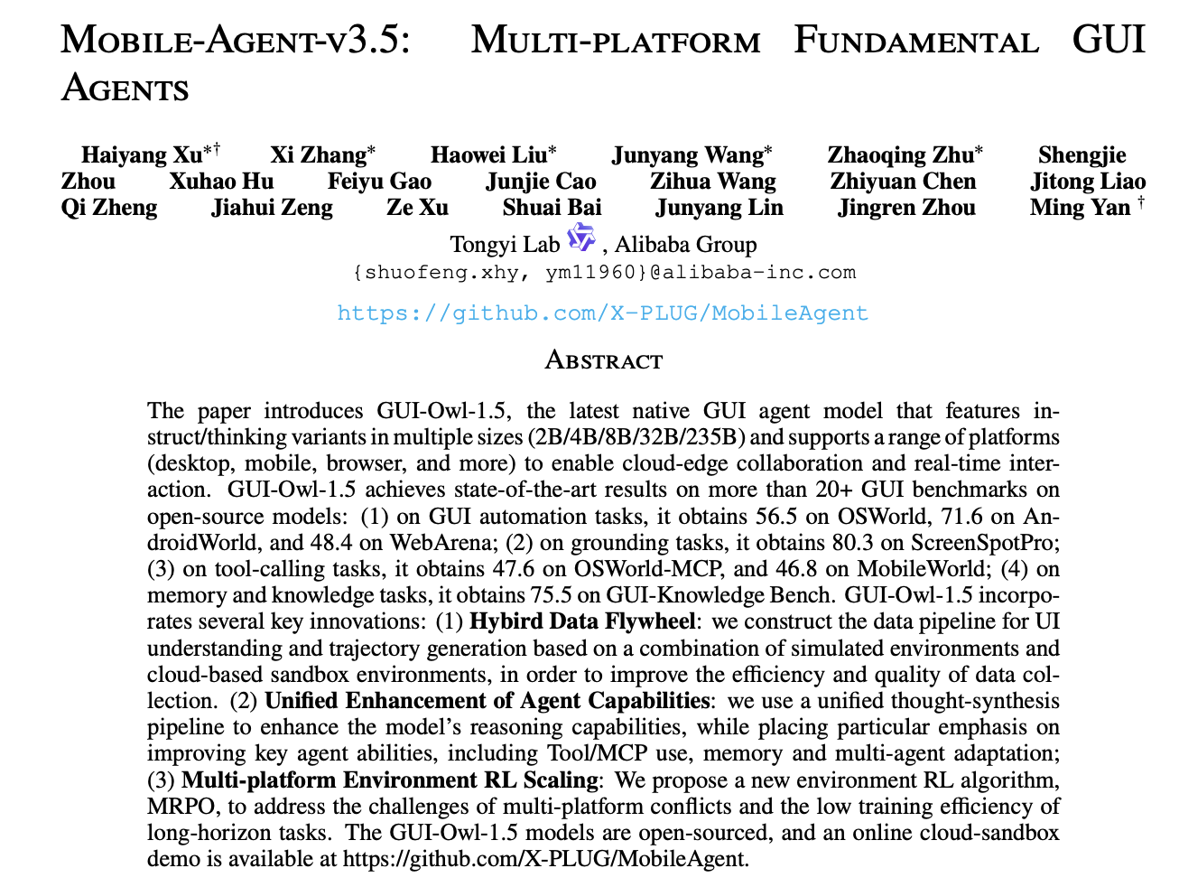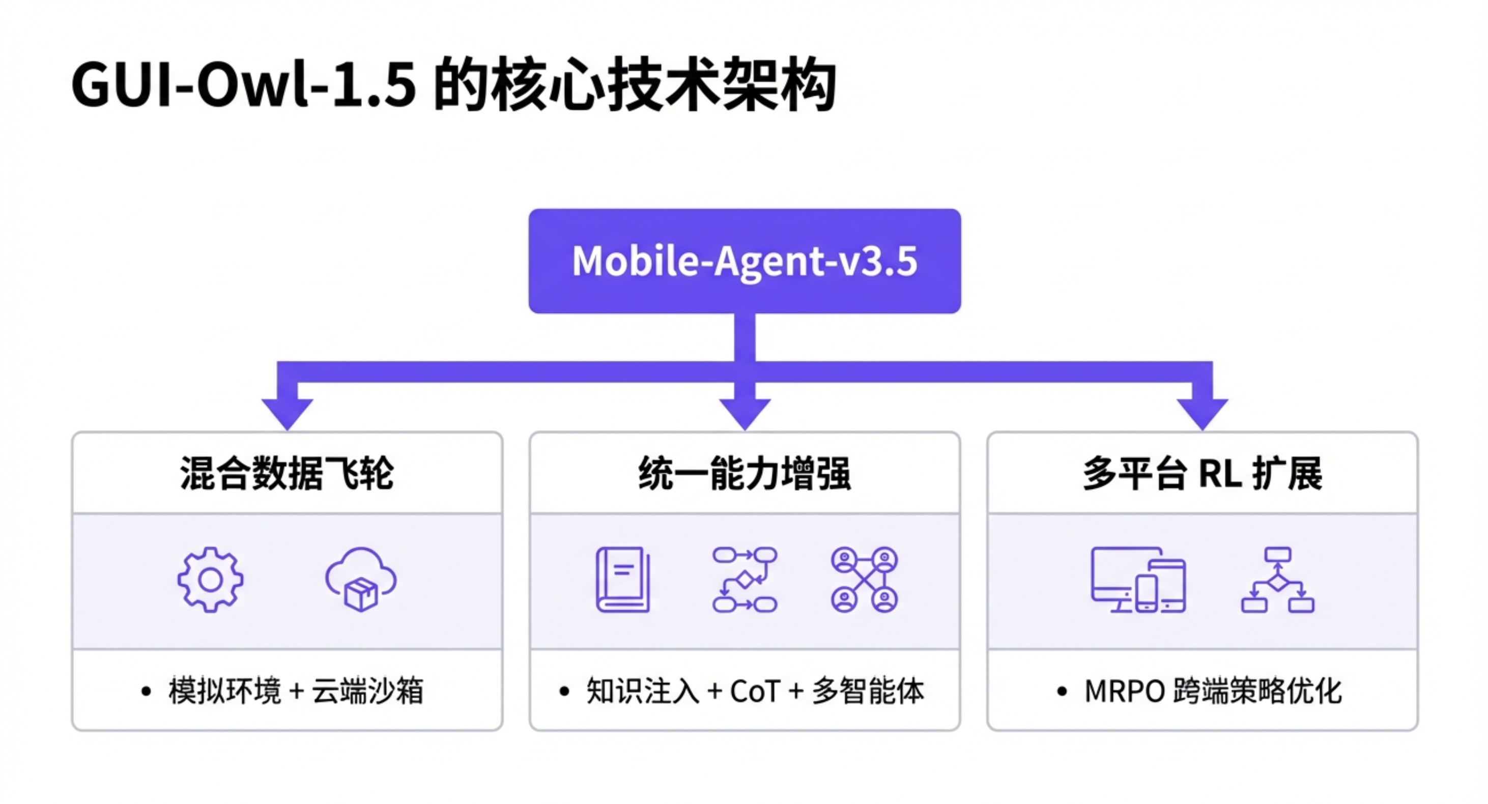 论文揭示了 GUI-Owl 1.5 性能飞跃背后的三大技术创新: