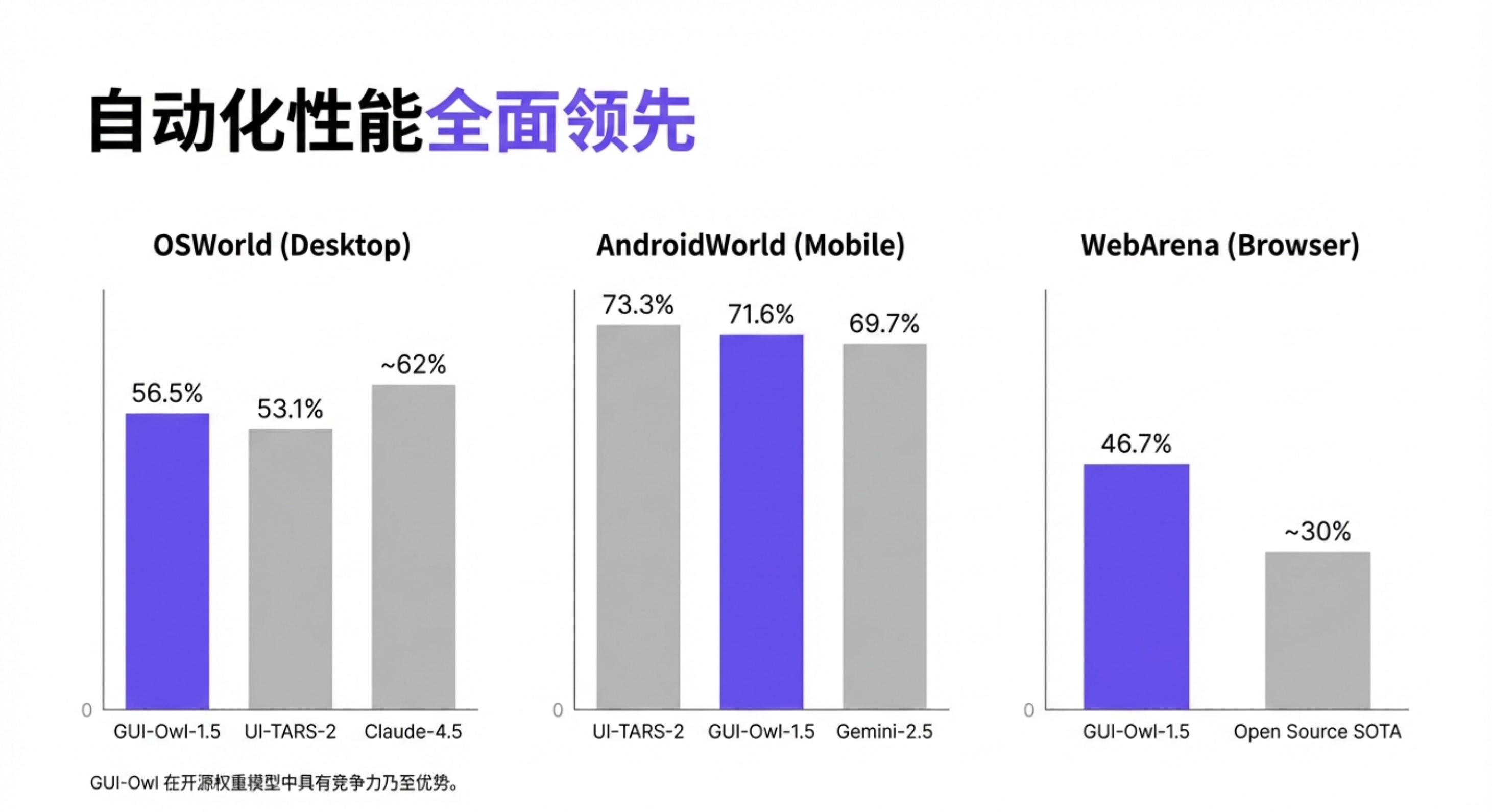 OSWorld(通用操作系统任务):获得56.5分,超越众多闭源模型。