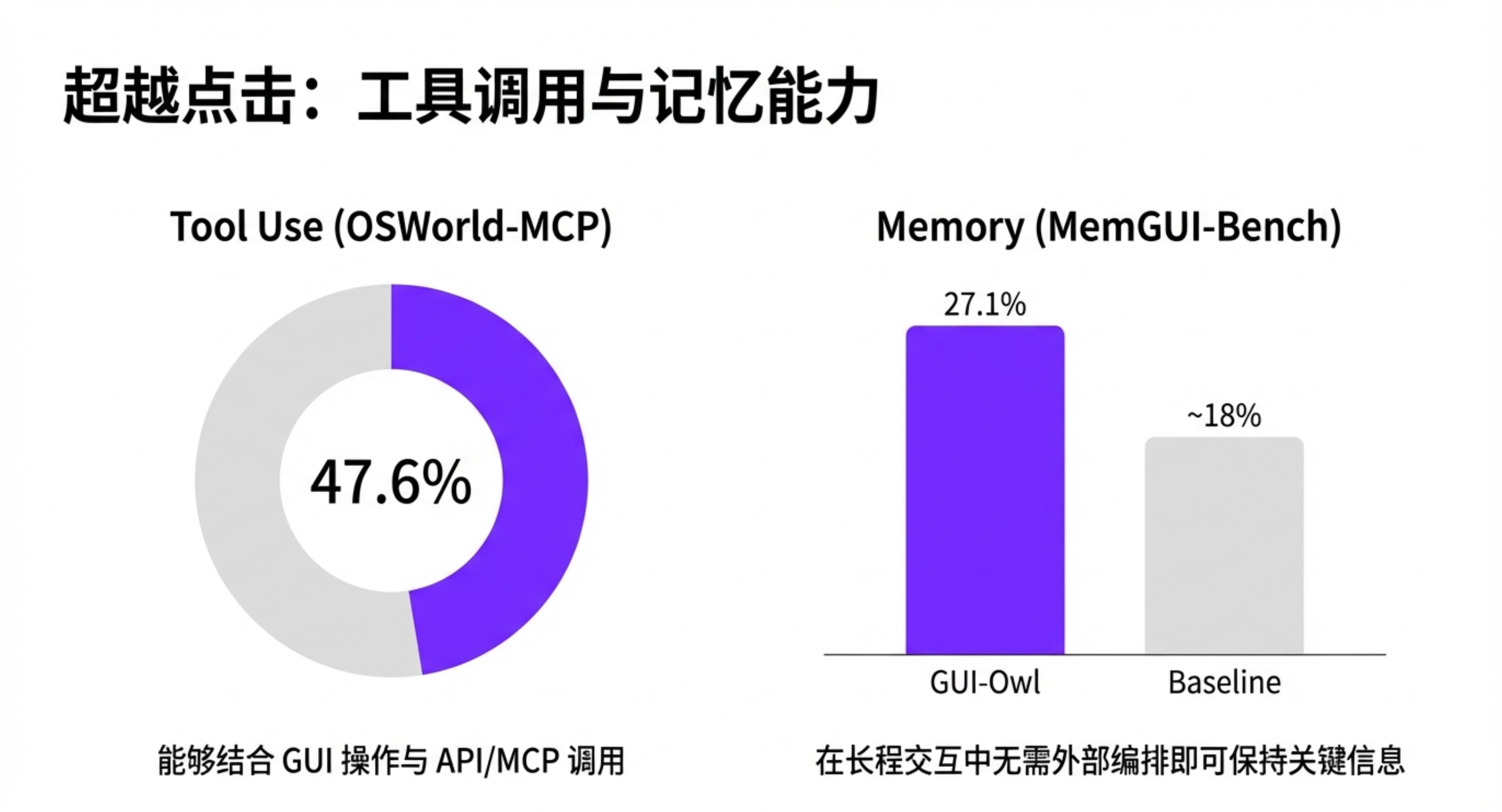 OSWorld-MCP(工具调用):获得47.6分,验证了其调用外部工具的能力。