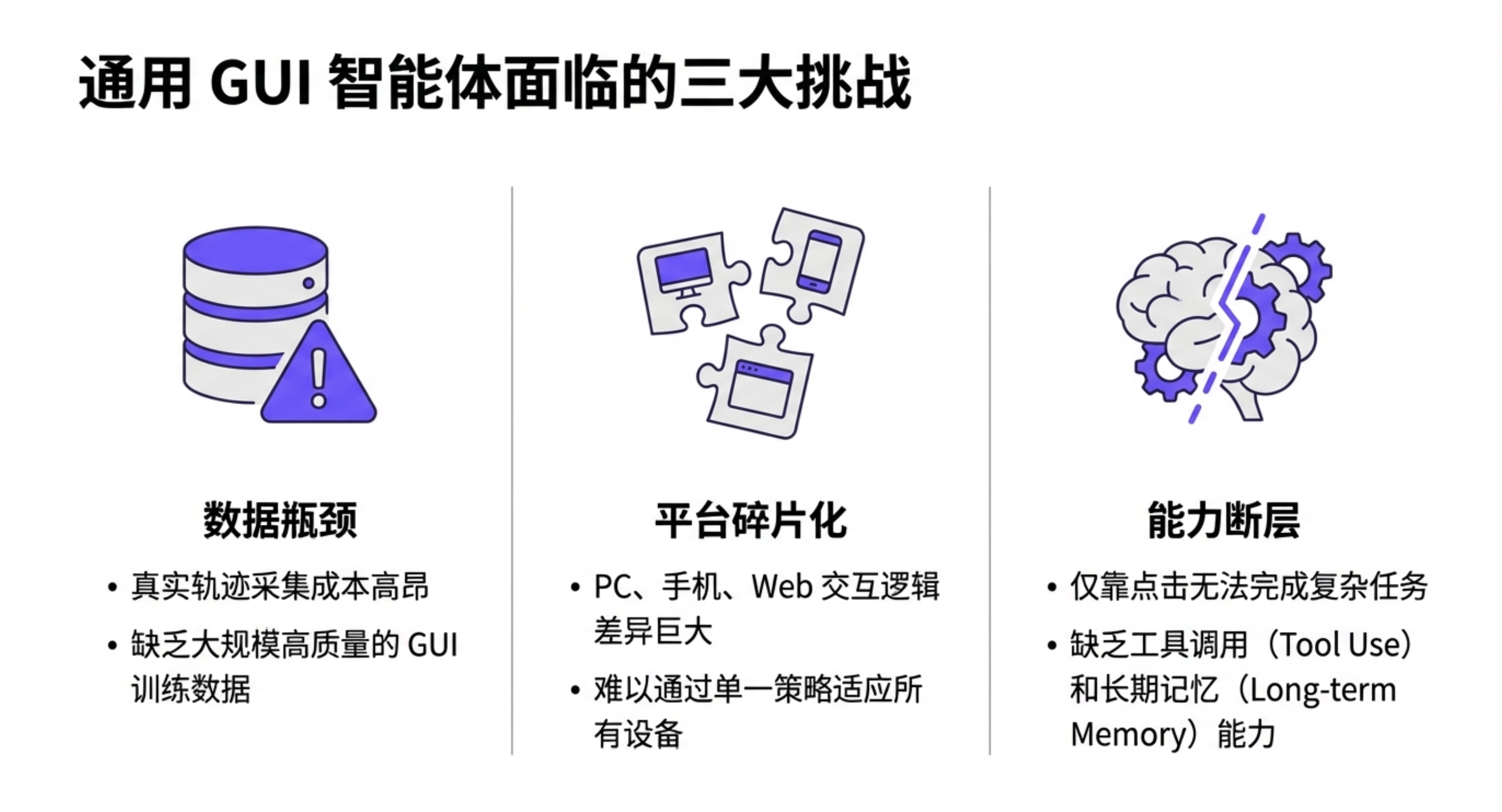 - 多平台原生支持:它并非为单一平台设计,而是原生支持桌面端、移动端和浏览器端三大数字化界面。这意味着同一个模型,既能理解手机 App 的布局,也能操作 PC 软件,还能在网页间穿梭。