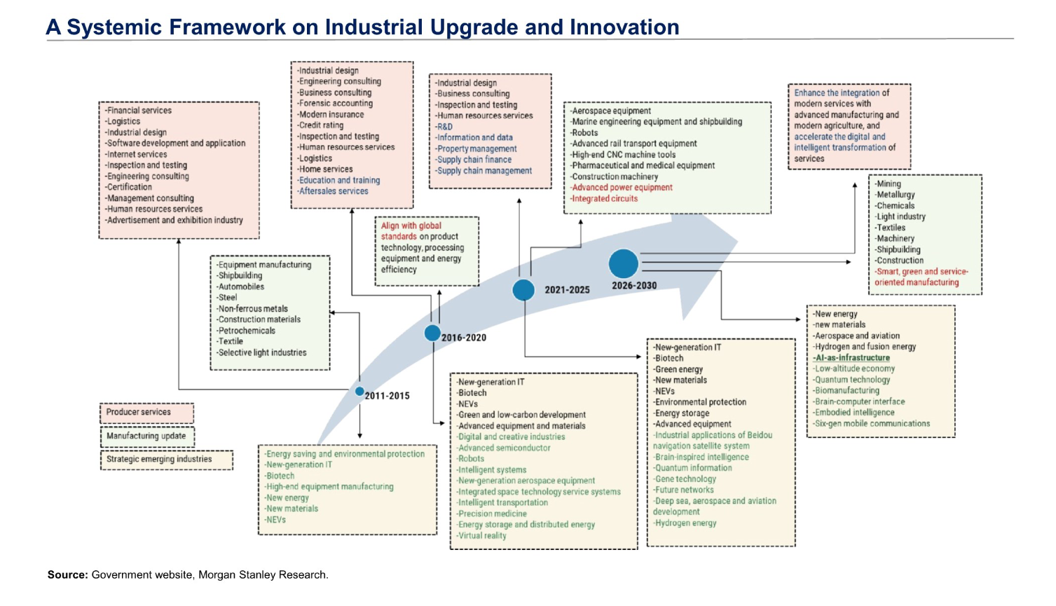 针对当前经济格局,政策端推出“5R”再通胀策略,2025年底已实现财政赤字扩至GDP的1.1个百分点、央行降准降息等初步目标,而最优情景下,两年10万亿消费财政包、结构性改革2.0等政策将进一步释放消费潜力、化解产能与债务问题。整体来看,中国经济复苏并非一蹴而就,产业升级与创新仍是长期主线,从2011-2030年的产业发展框架来看,低空经济、量子科技、脑机接口等新兴领域将成为制造升级的核心方向,而现代服务业与先进制造的融合,将持续夯实中国制造业的全球竞争力。