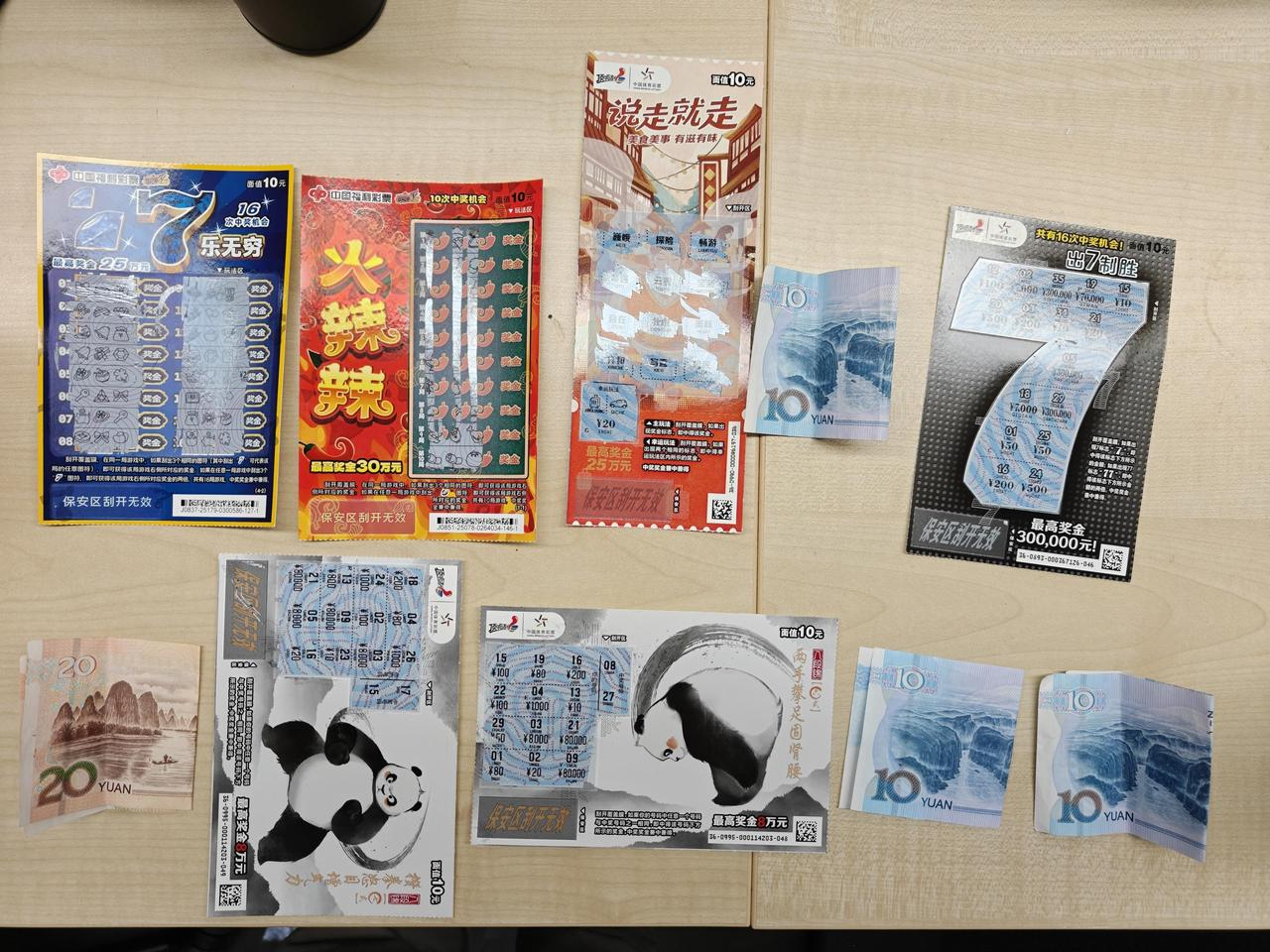 我最近连续买了10天的票面价格10元的刮刮乐。最终战绩,中4次,总计中奖金额为50元。也就是总支出100元,总收入50元,总亏损50元,亏损比例50%。我把战绩贴在文稿里了,感兴趣的朋友可以看一眼。这个结果只能说是非常的平平无奇,也是从另一个角度再次验证我真的是很非。不过,这数字还挺整,不是100就是50的,也算是缘分。
