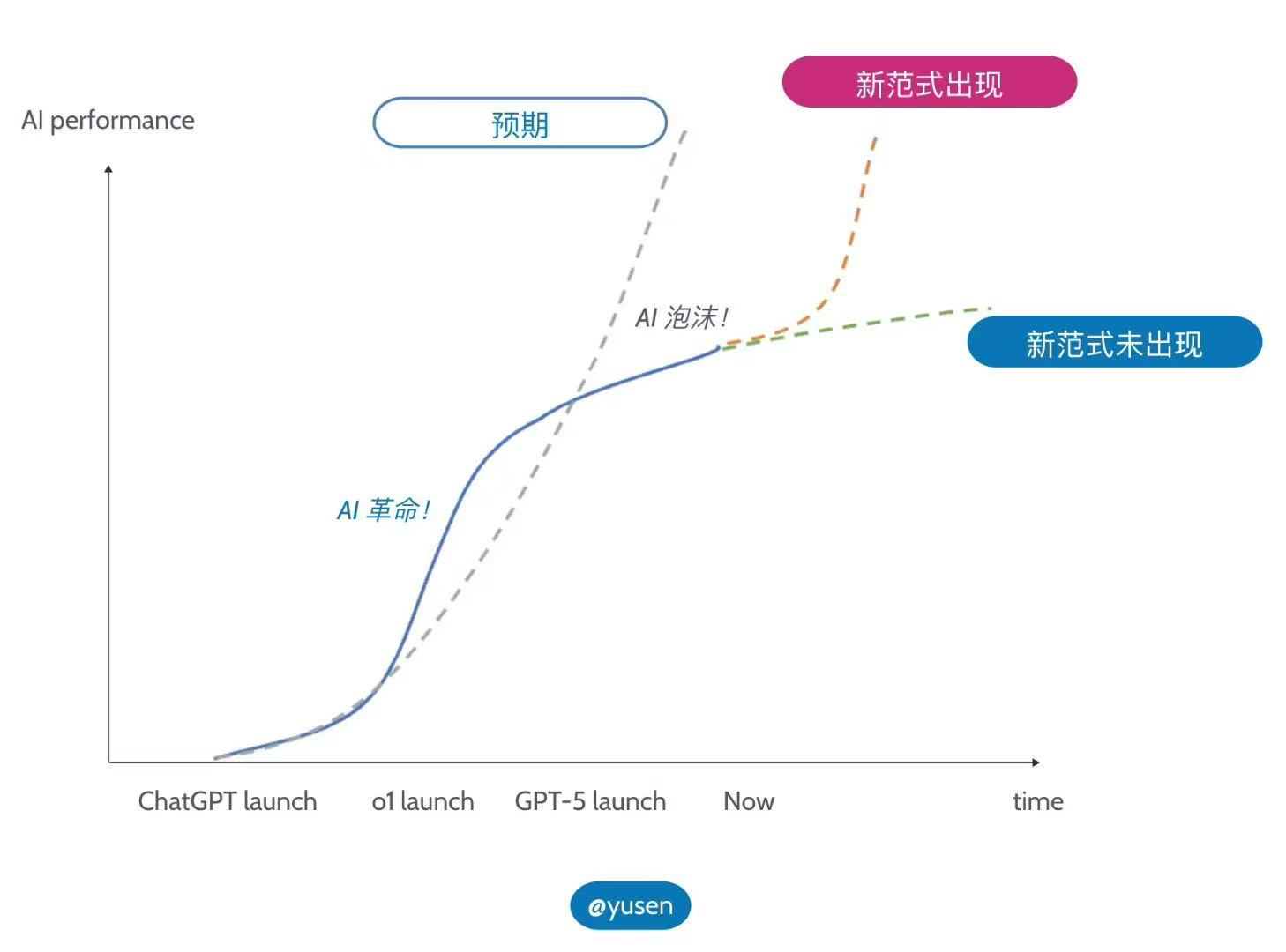 (以下来自戴雨森朋友圈的两张图,表达在年初市场上 AI 泡沫论的想法)