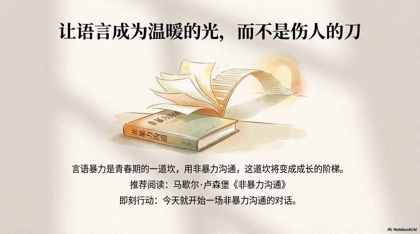 本期《如木慢长》播客聚焦深受青春期孩子遭遇言语暴力困扰的家长群体,主播以陪伴青春期孩子成长的妈妈视角,结合女儿初二遭遇校园言语暴力的真实案例,点明言语暴力是隐形霸凌。节目剖析了言语暴力对青春期孩子的深层伤害,解读马歇尔·卢森堡《非暴力沟通》的核心理论,分线下、线上、家庭三个场景给出具体应对方法,还分享了教孩子避免成为施暴者的技巧,以及家校共建非暴力沟通环境的建议,助力家长和孩子应对言语暴力,让家庭与校园成为温暖港湾。