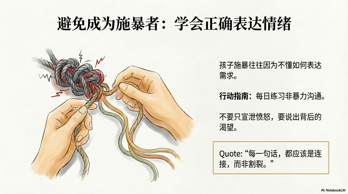 15:10 分享教孩子避免成为施暴者的方法,通过非暴力沟通小练习培养孩子的恰当表达能力