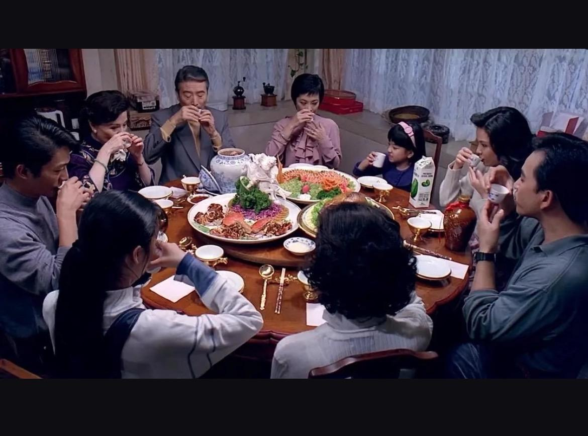 李安《饮食男女》电影截图 圆桌家庭聚餐