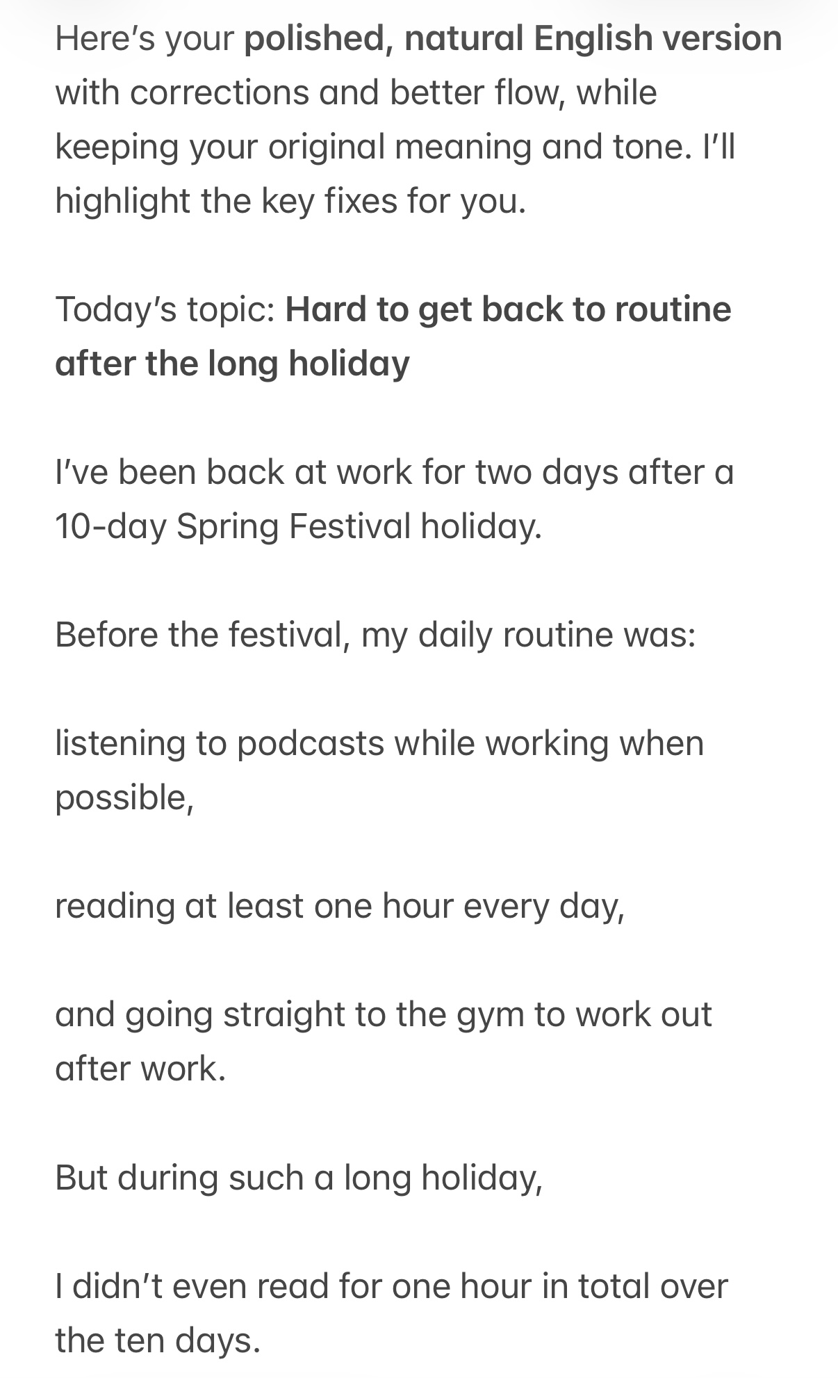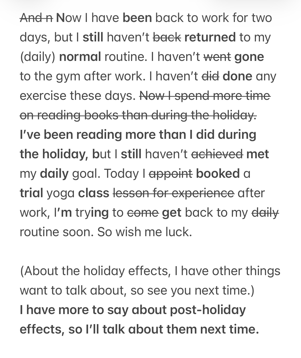 4th| Hard to get back to routine after the long holiday
