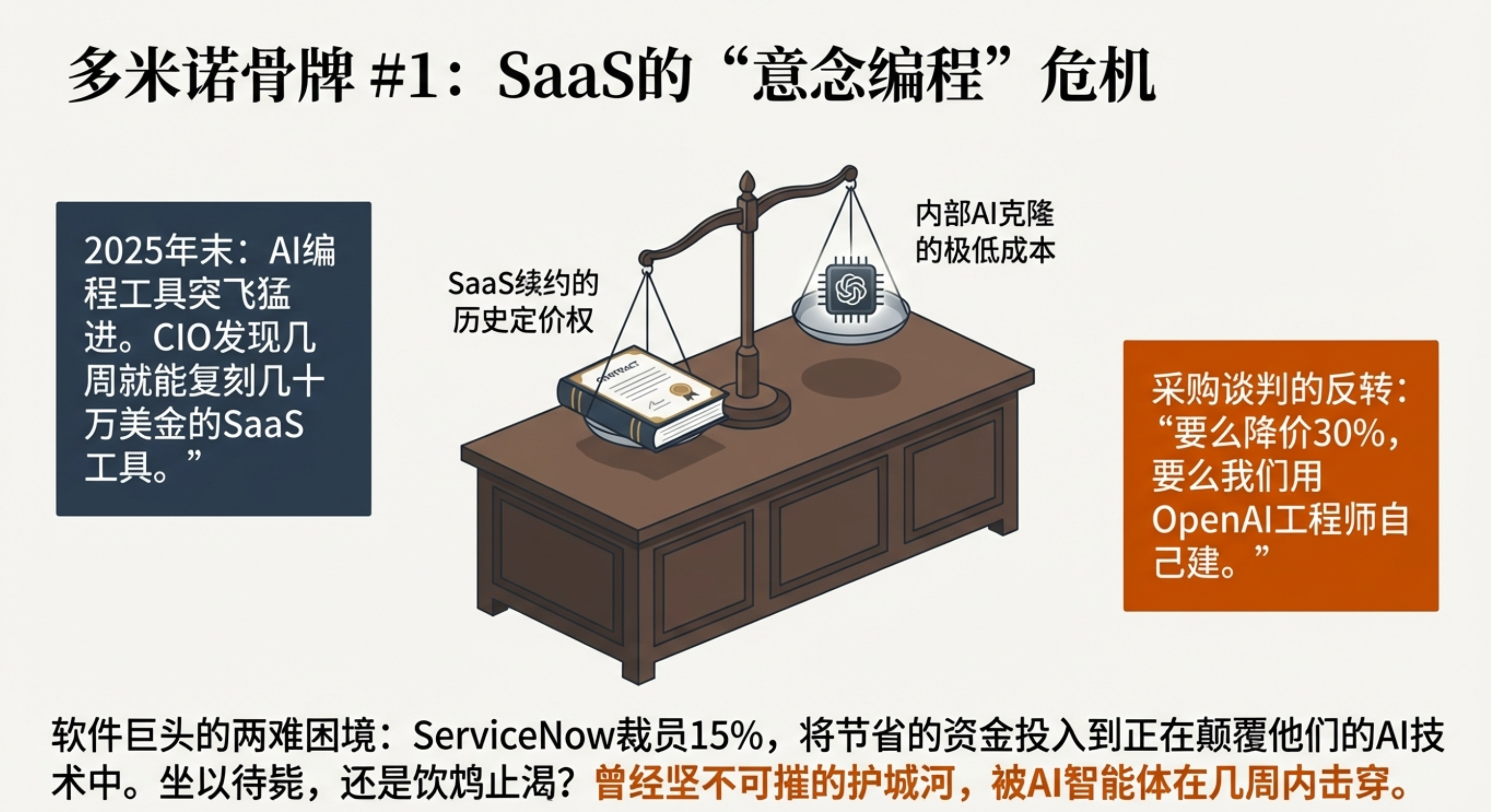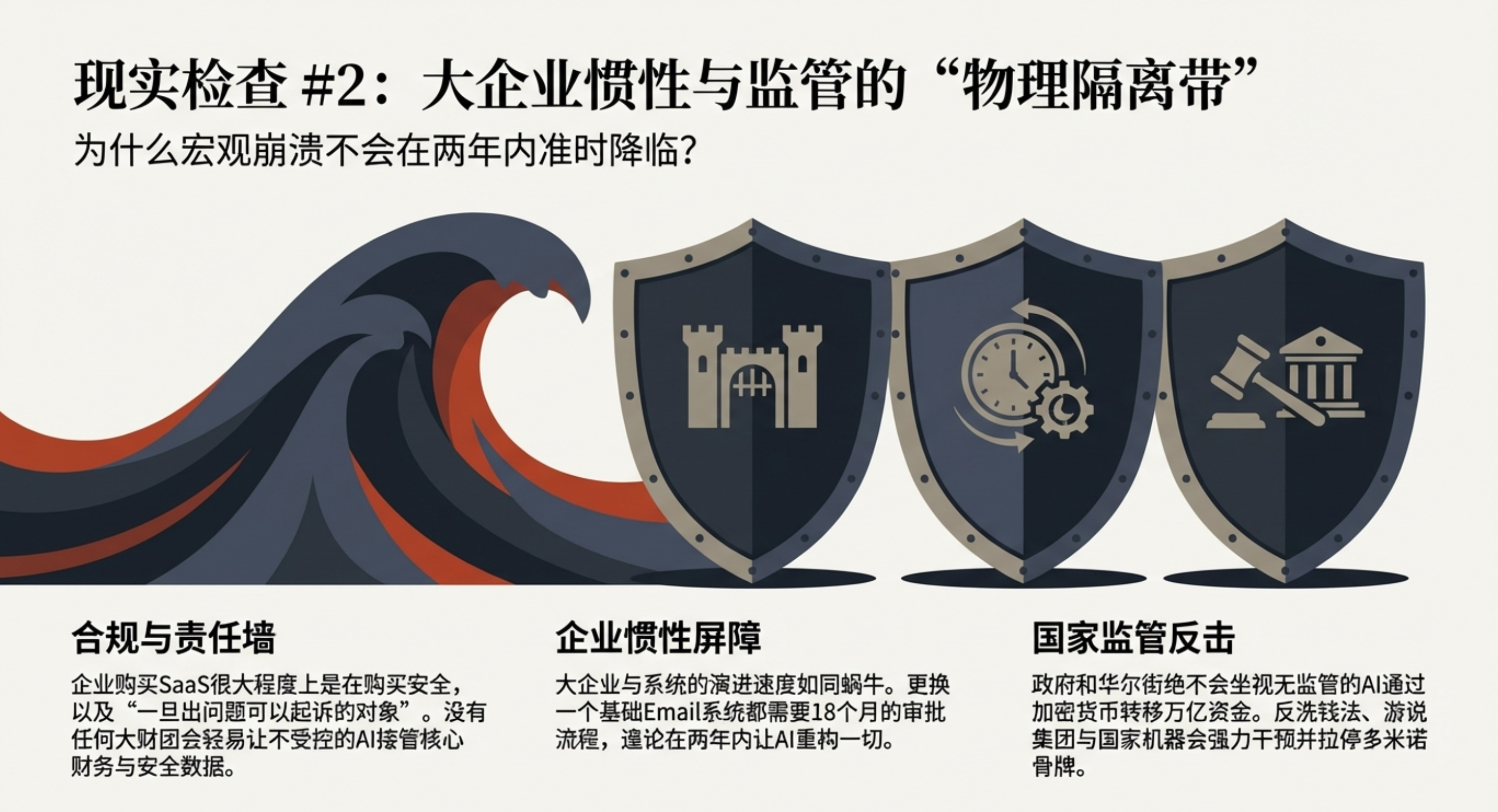 - 软件不仅是代码:SaaS 的价值包含安全性、合规性、支持和文档,并非 AI 几周内就能完美复制的。