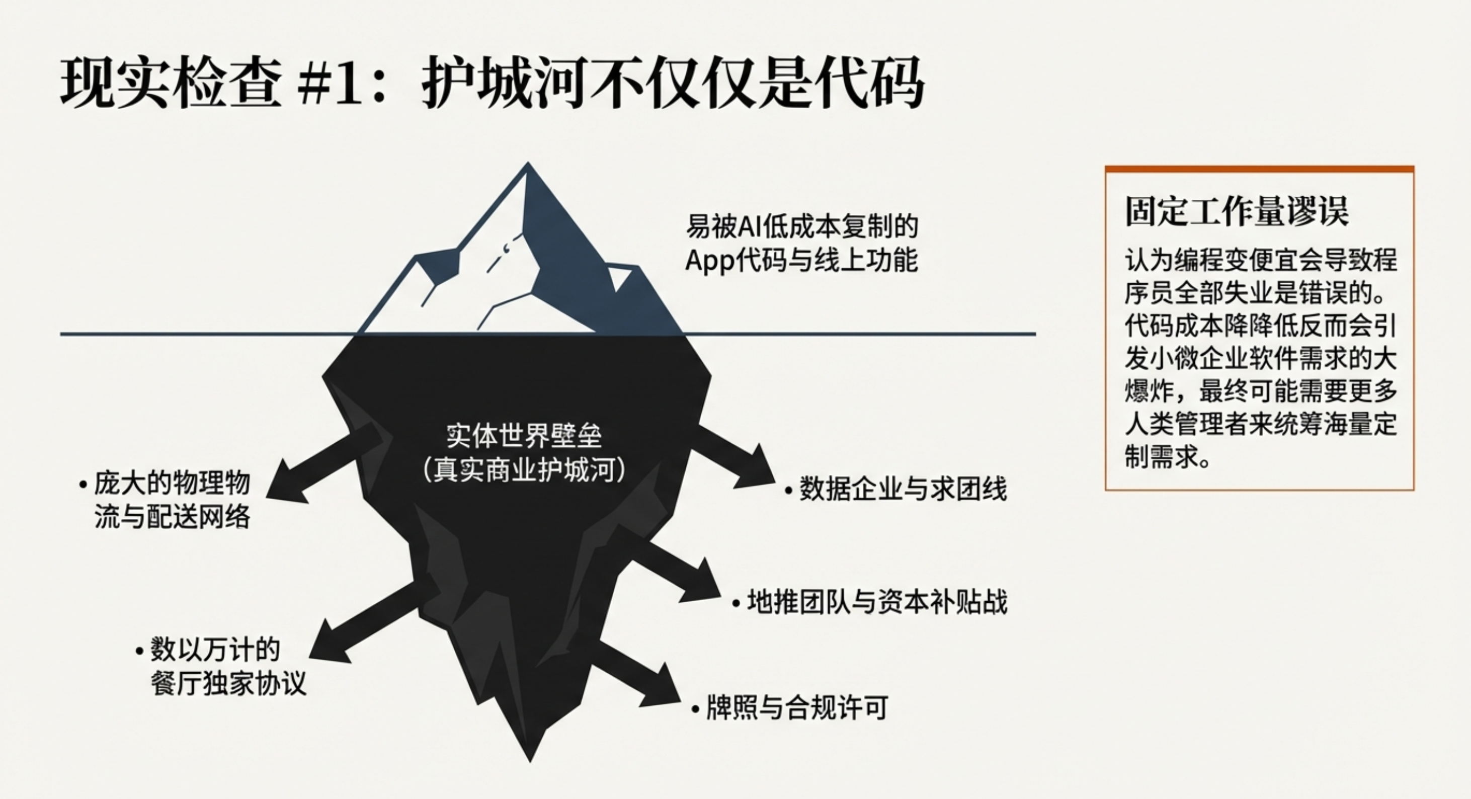 - 物理世界的壁垒:DoorDash 真正的护城河是其分布式的司机网络和物流协调,而非简单的 App 代码。