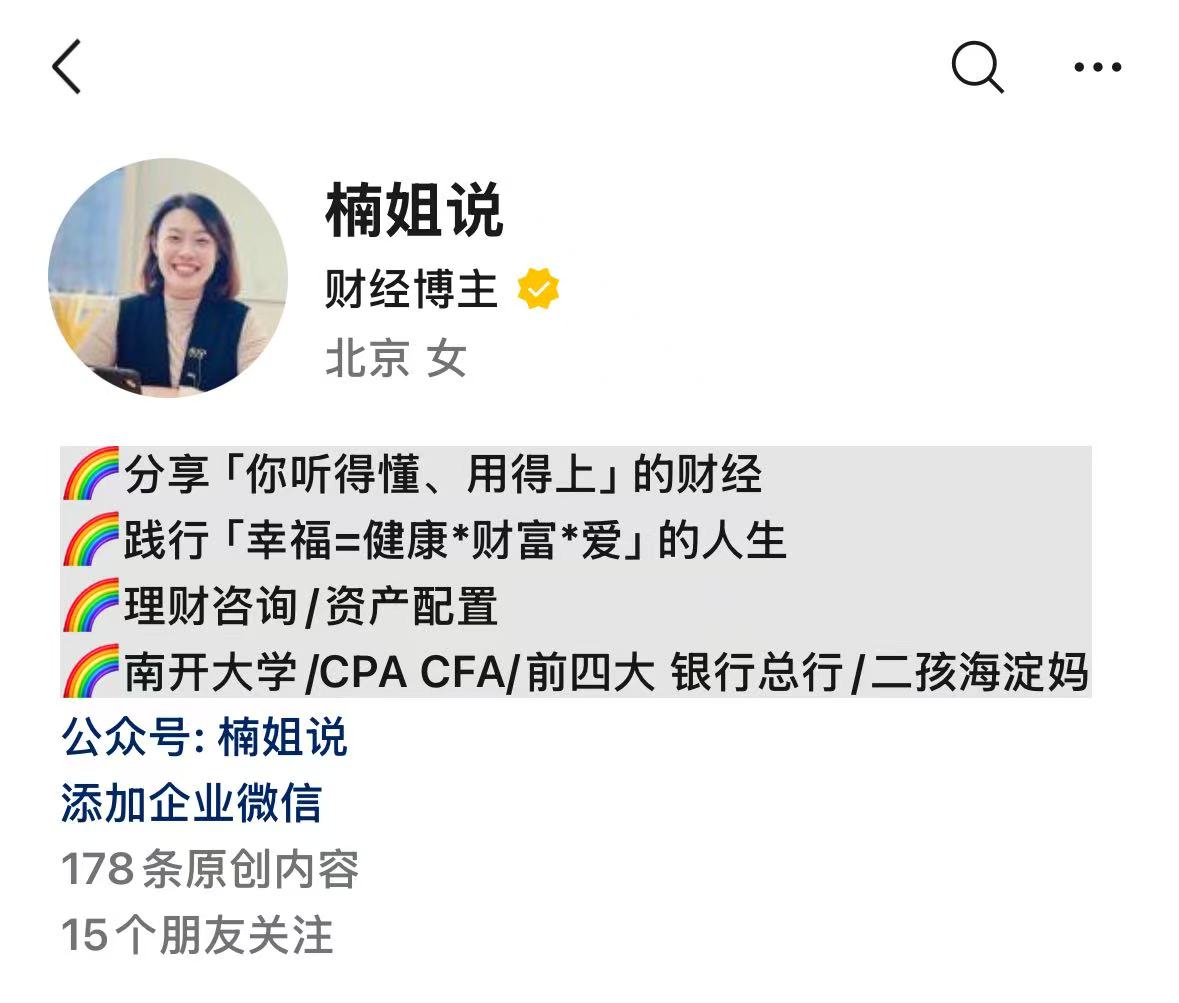 王楠:10w粉理财博主,欢迎关注楠姐的视频号“楠姐说”