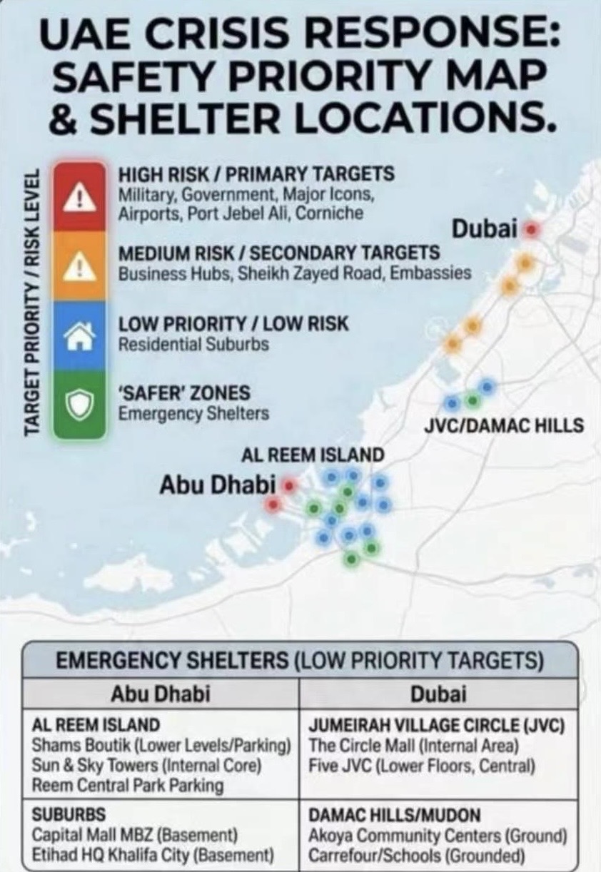 阿联酋华人朋友分享的避难所信息: