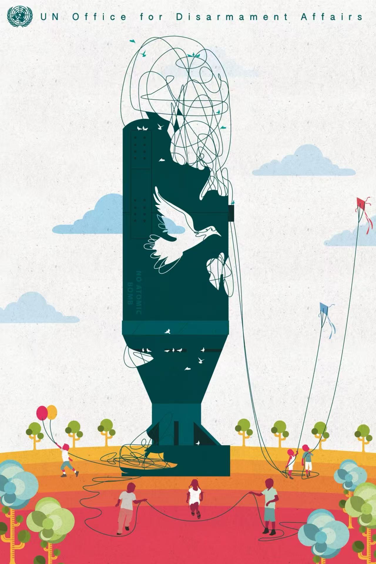 本期封面图来自联合国和平海报大赛(Disarmament Poster Contest),是一副名为First Place的获奖作品的截图,作者是来自秘鲁的Ivan Ciro Palomino Huamani。