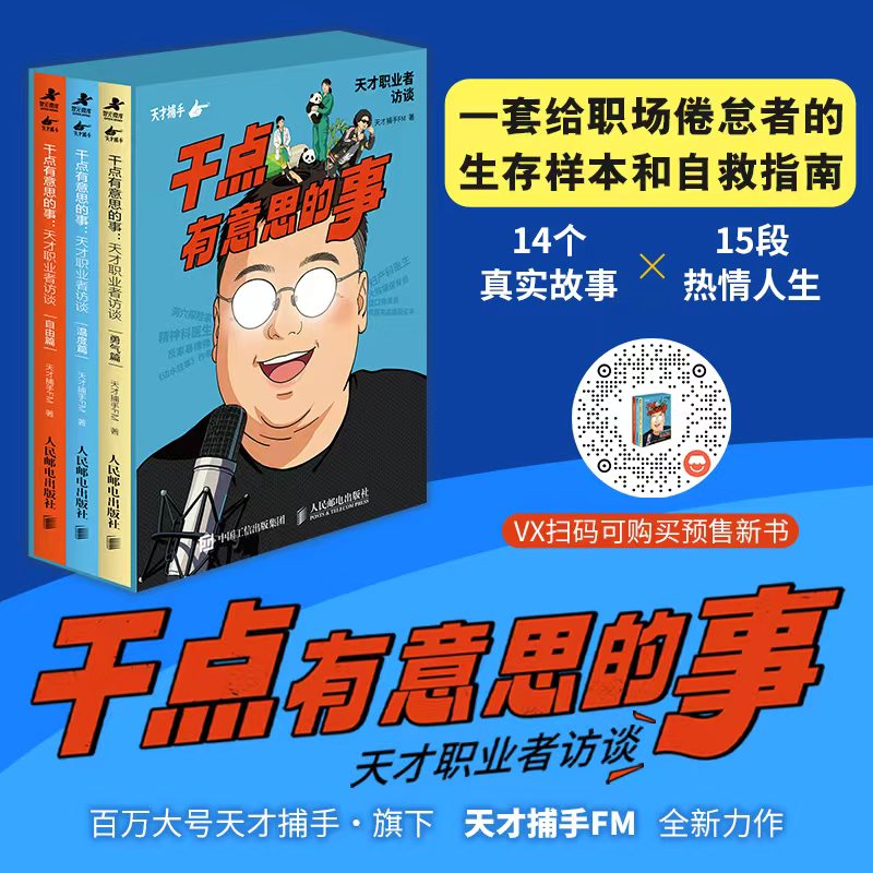 欢迎收听本期播客!另外,由猛哥编著的全新套装图书《干点有意思的事:天才职业者访谈》已经上市啦!干点有意思的事?是一种状态,是专注、热爱、探索未知所带来的巨大精神满足!天才职业者?那些专注改变世界角落的平凡者就是天才职业者!希望大家通过看别人工作中的「有意思时刻」,体验人生的千万种可能,找到答案和勇气!欢迎大家在各大平台搜索「干点有意思的事」购买!