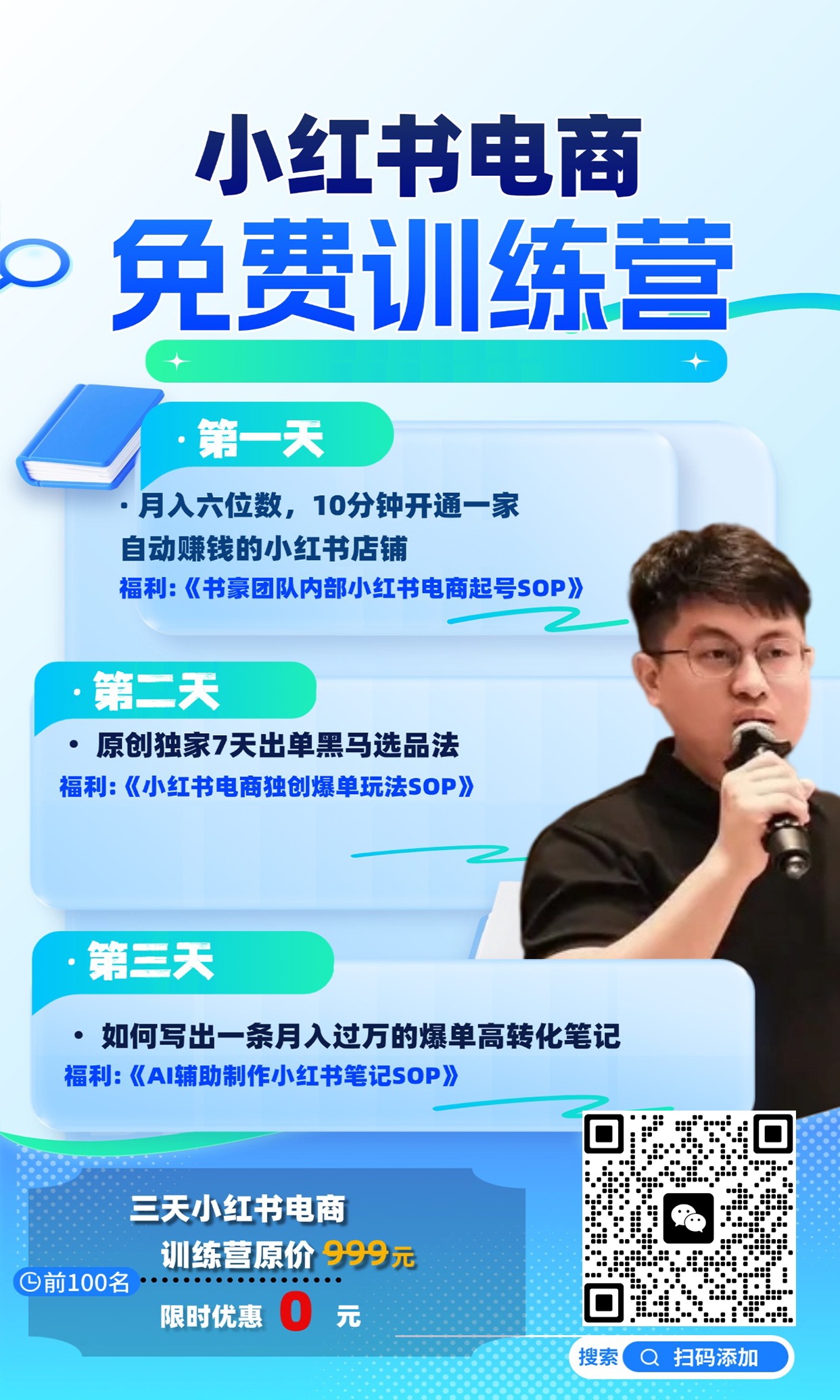 「小红书电商开店从0到1」的手册+「原价999元的三天直播训练营」