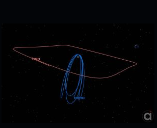 DRO与NRHO的轨道比较图,红色为DRO