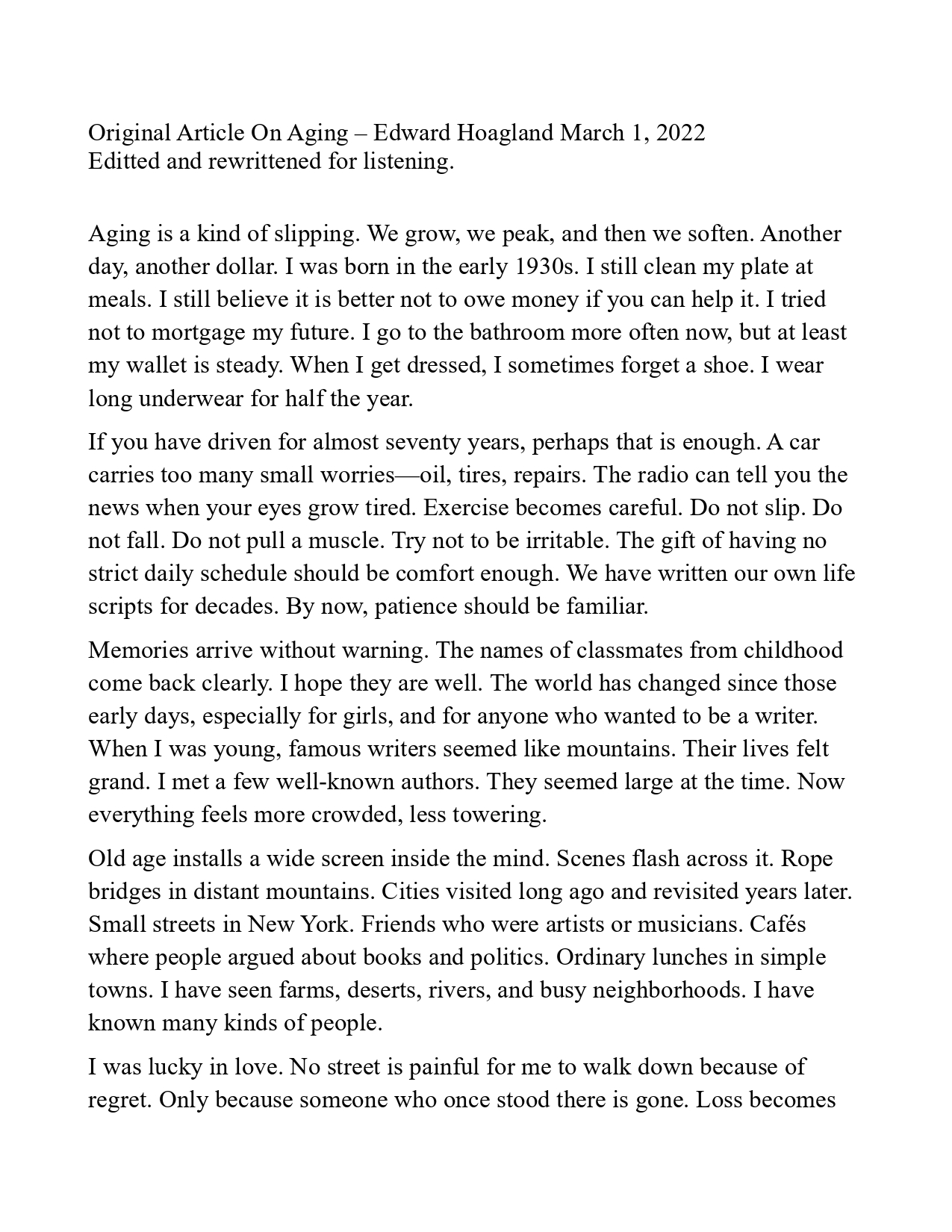 Original Article: On Aging - Edward Hoagland. March 1, 2022