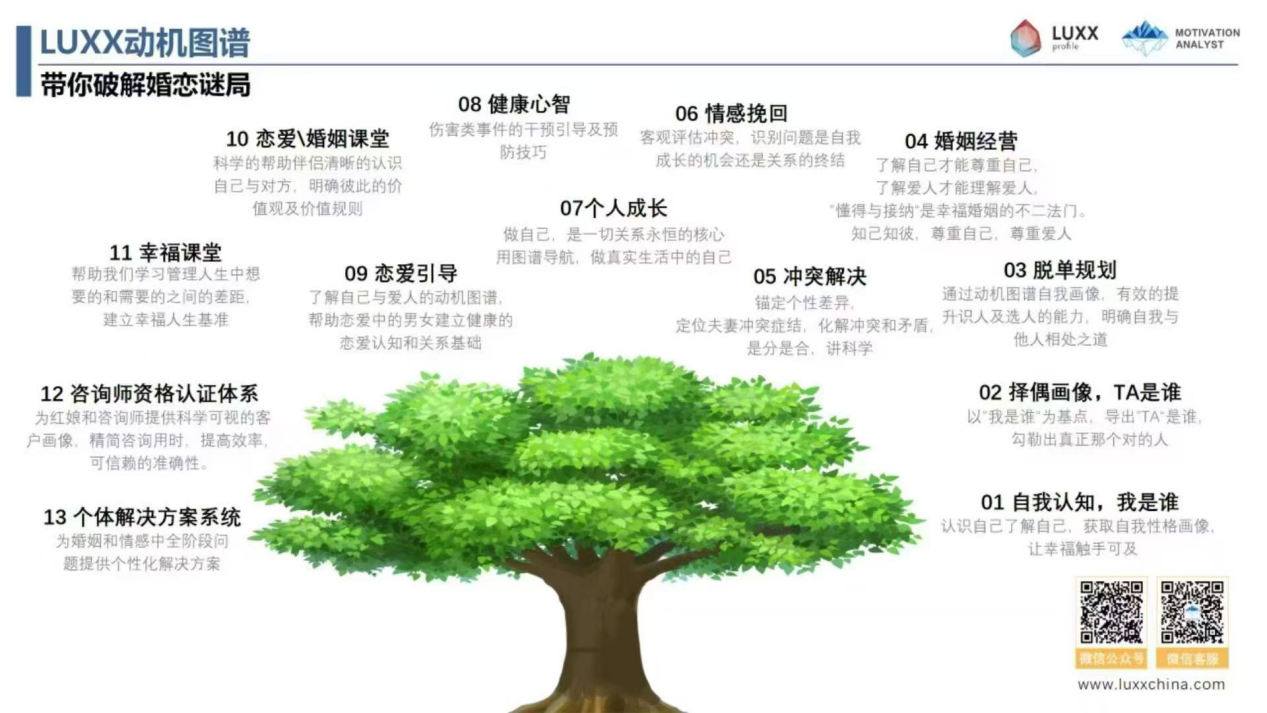 - 应用场景:可应用于个人成长、职业发展、亲子关系、婚恋等多个领域,帮助人们挖掘自身潜在动机,增加自我认知,更好地理解自己与他人的关系,从而在不同场景中做出更合适的决策。例如在婚恋中,能帮助单身男女科学、准确地挖掘自身潜在动机,识别与自身核心婚恋需求。
