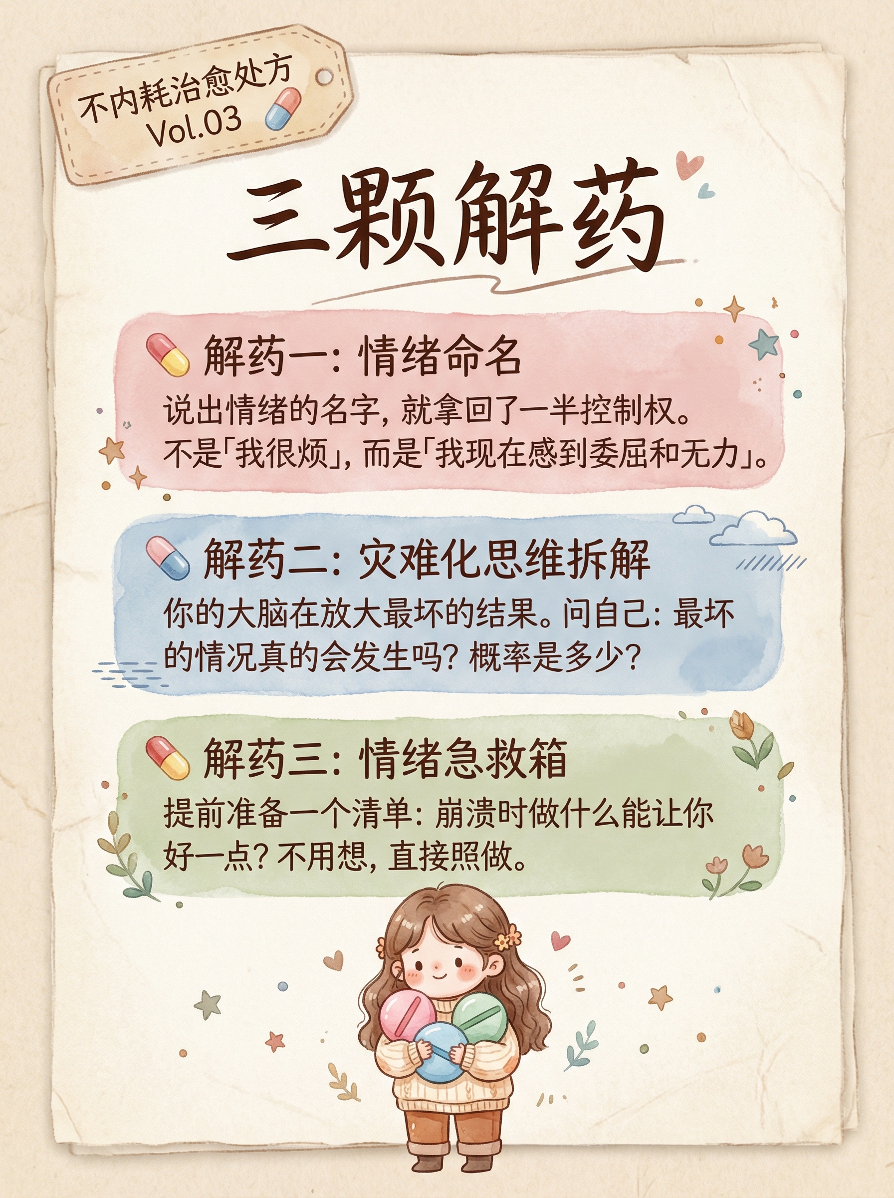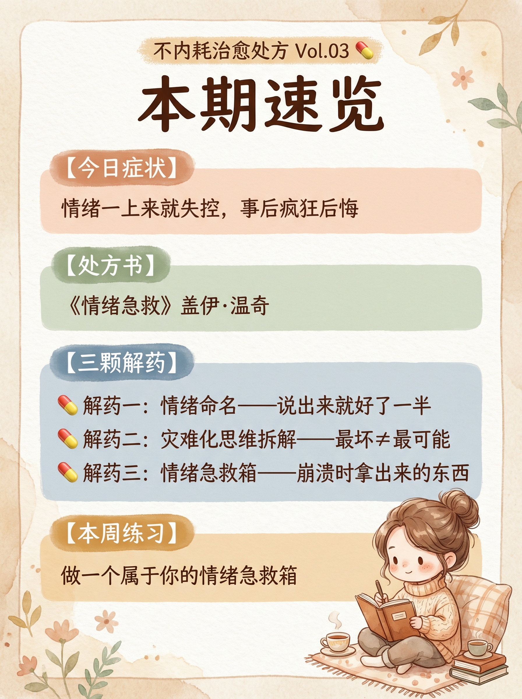我会从《情绪急救》里拿出三个工具,帮你建一个属于自己的"情绪急救箱"。