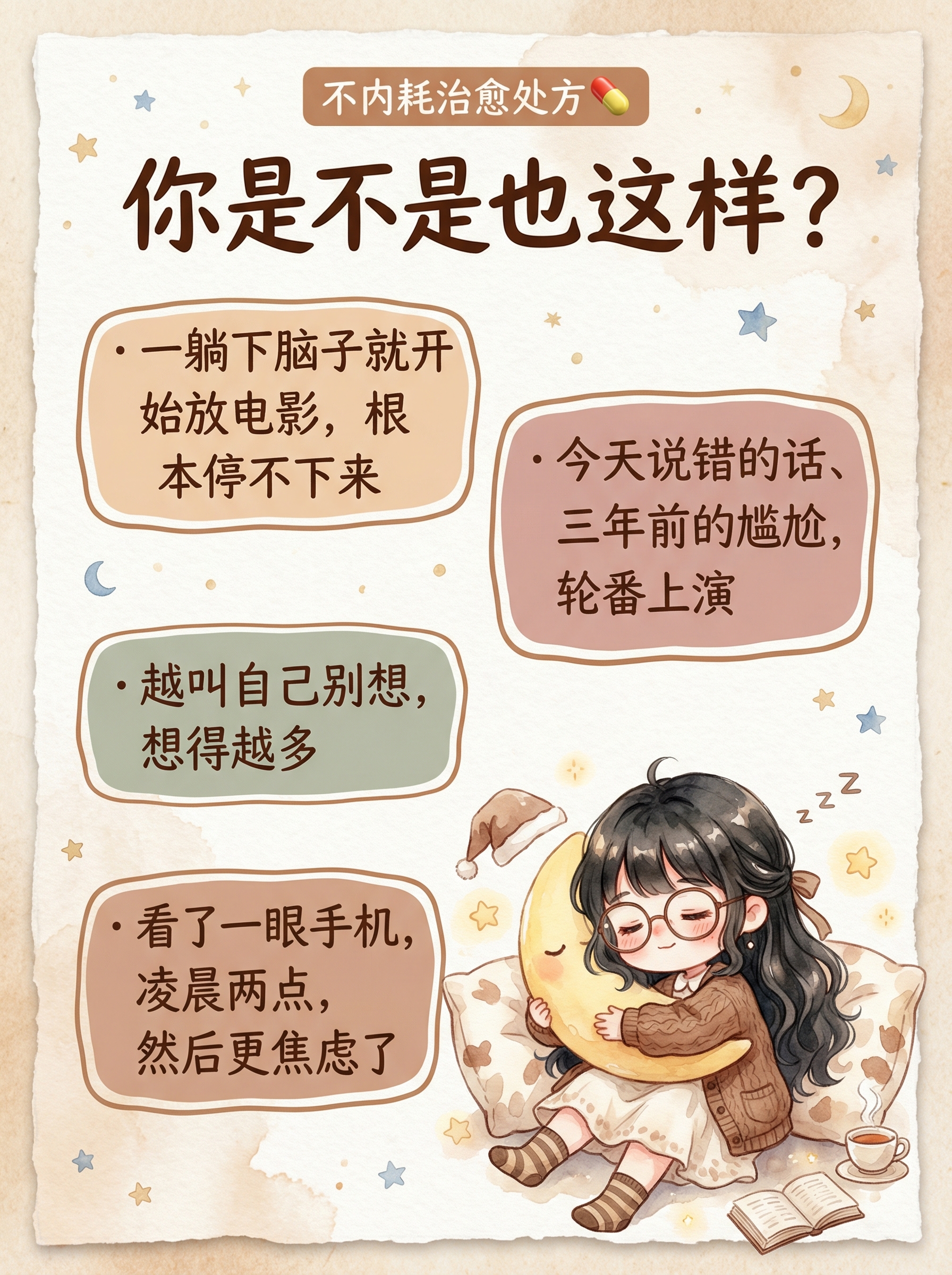 你翻个身,看一眼手机,凌晨两点。你骂自己"为什么还不睡"——然后多了一件事可以焦虑。