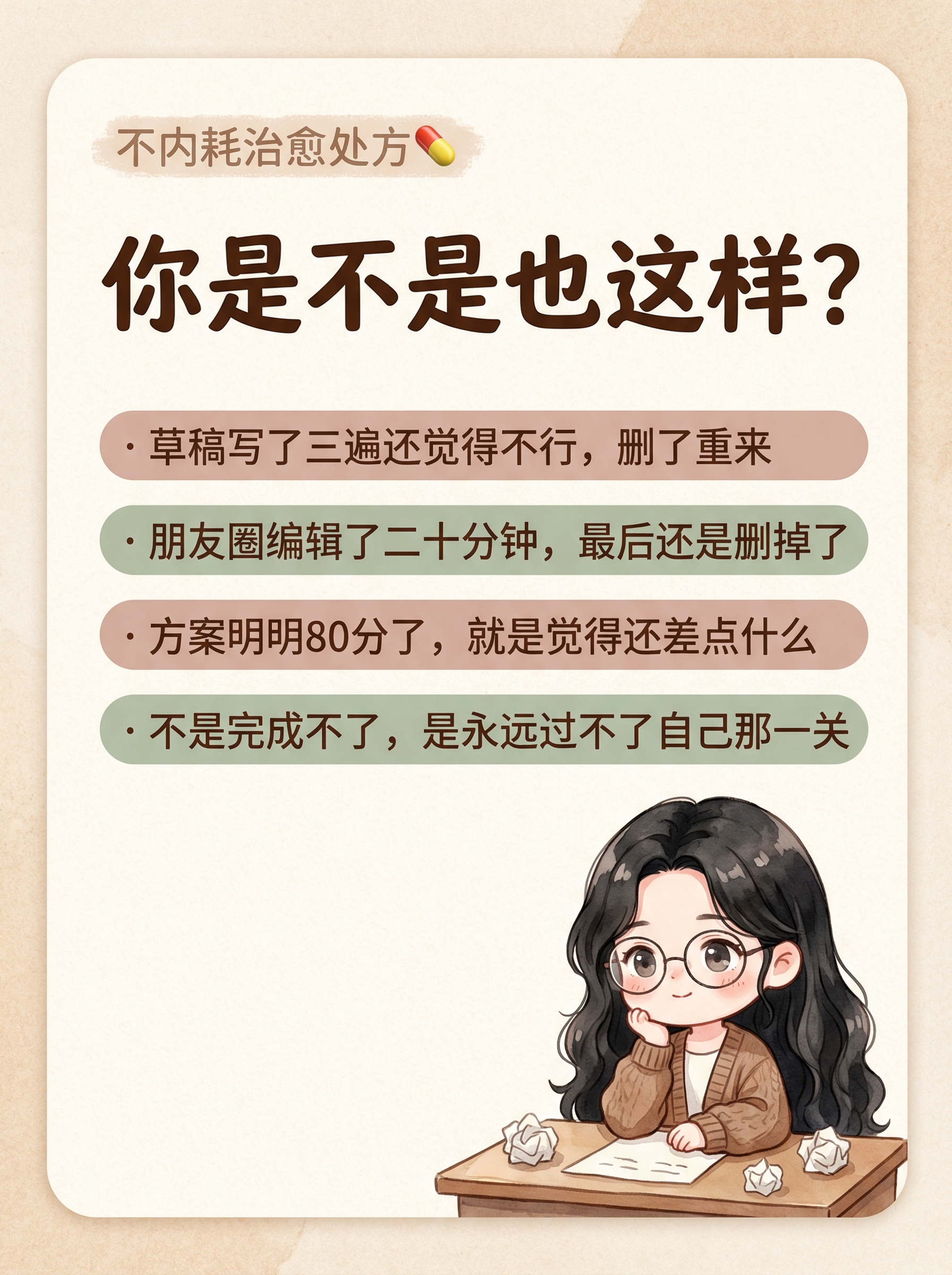 你的草稿写了三遍还觉得不行。你的朋友圈编辑了二十分钟还是删掉了。你的方案明明80分了,但你就是觉得还差点什么。