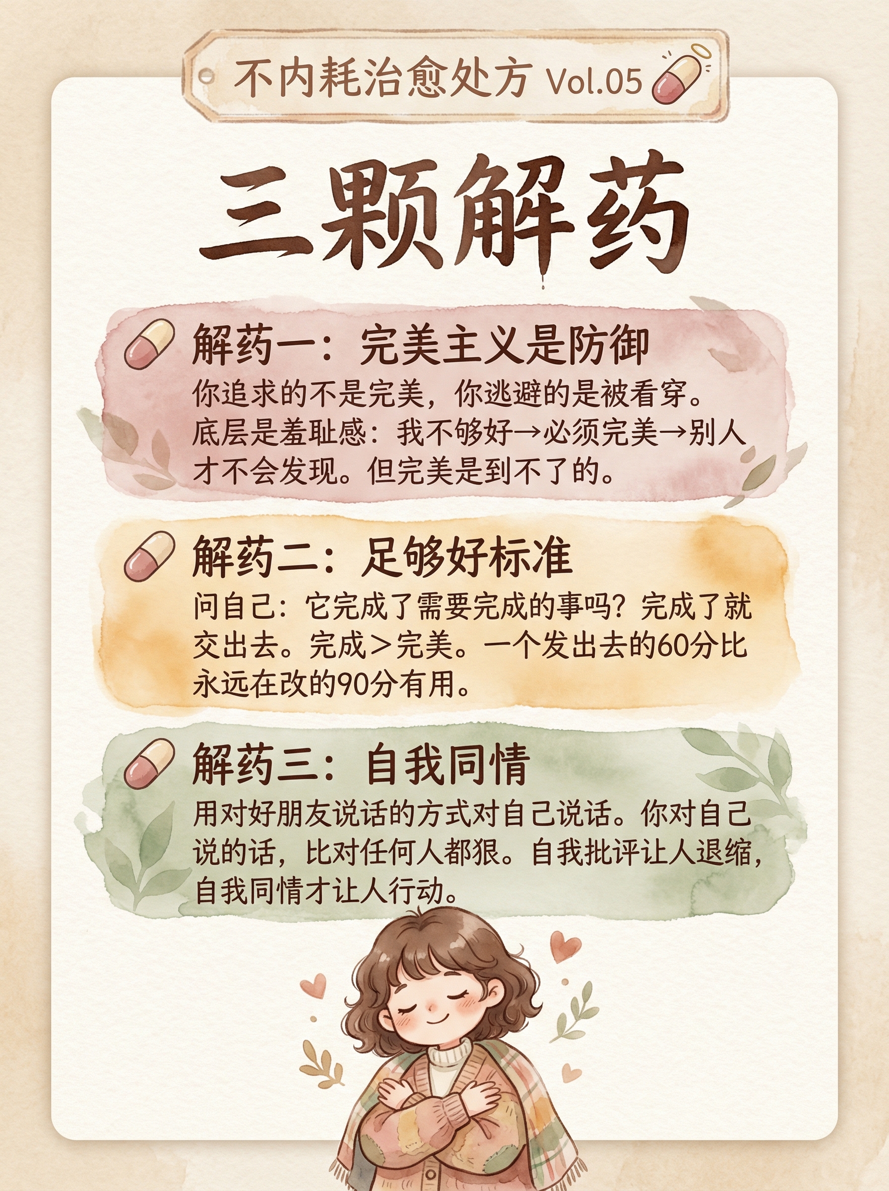更扎心的是——你不是因为做不好而痛苦。你是因为"总觉得不够好"而痛苦。那个声音不来自外界,它来自你自己。
