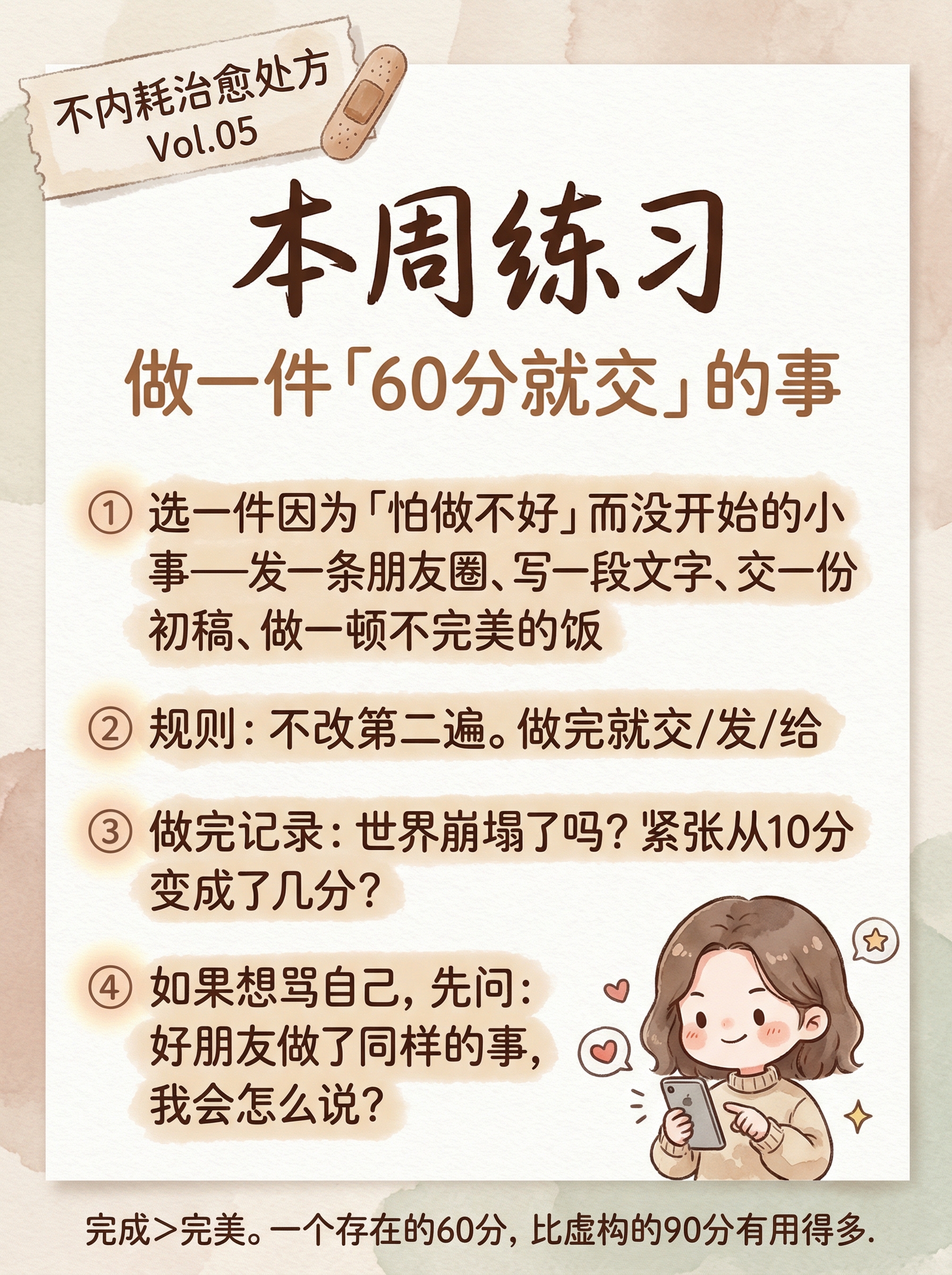 今天我们要解决的问题是:我总是觉得不够好、不敢交出去——怎么让自己接受"60分也可以"?
