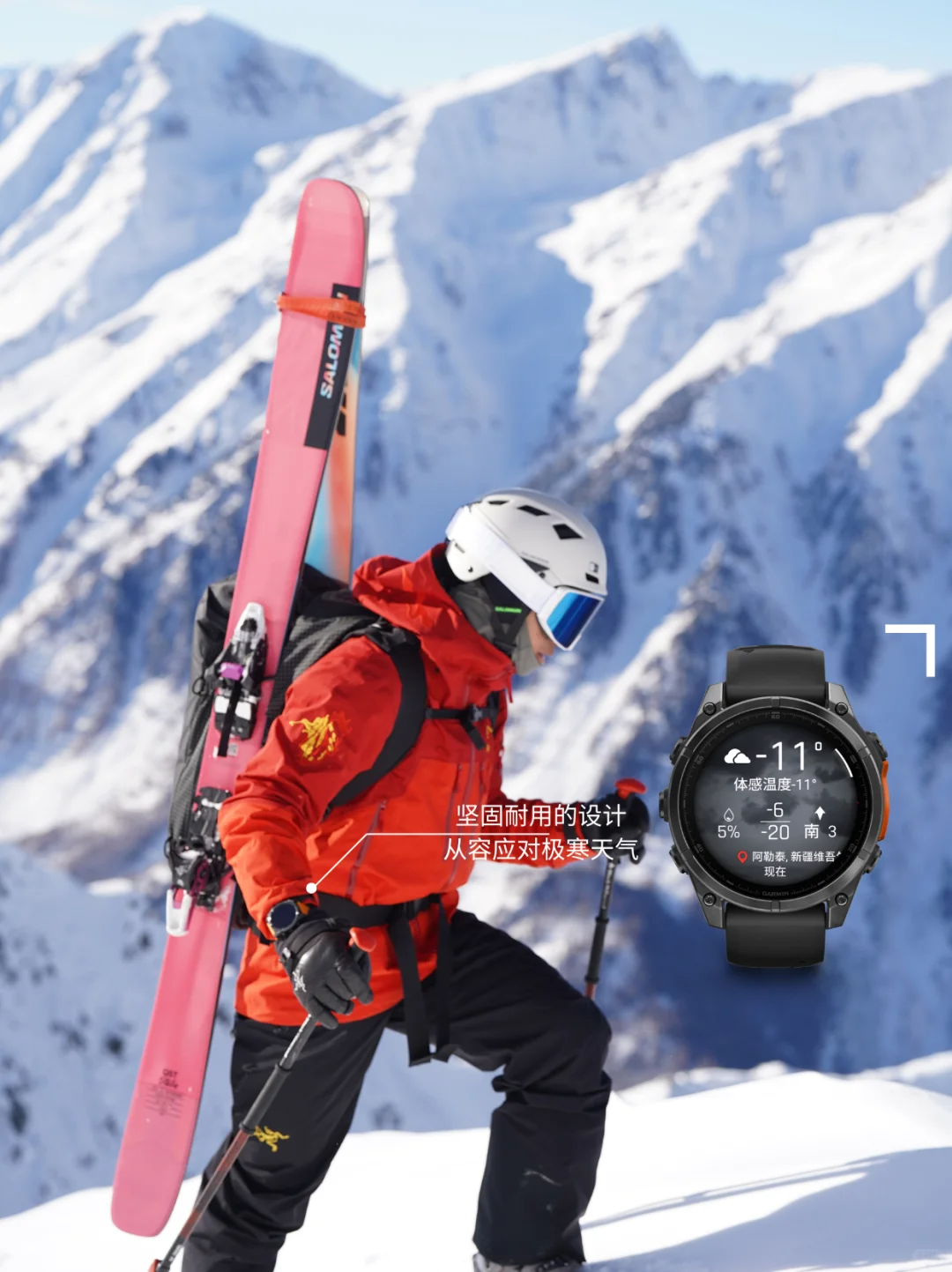 Garmin Fenix 8坚固耐低温,从容应对雪地的极寒天气