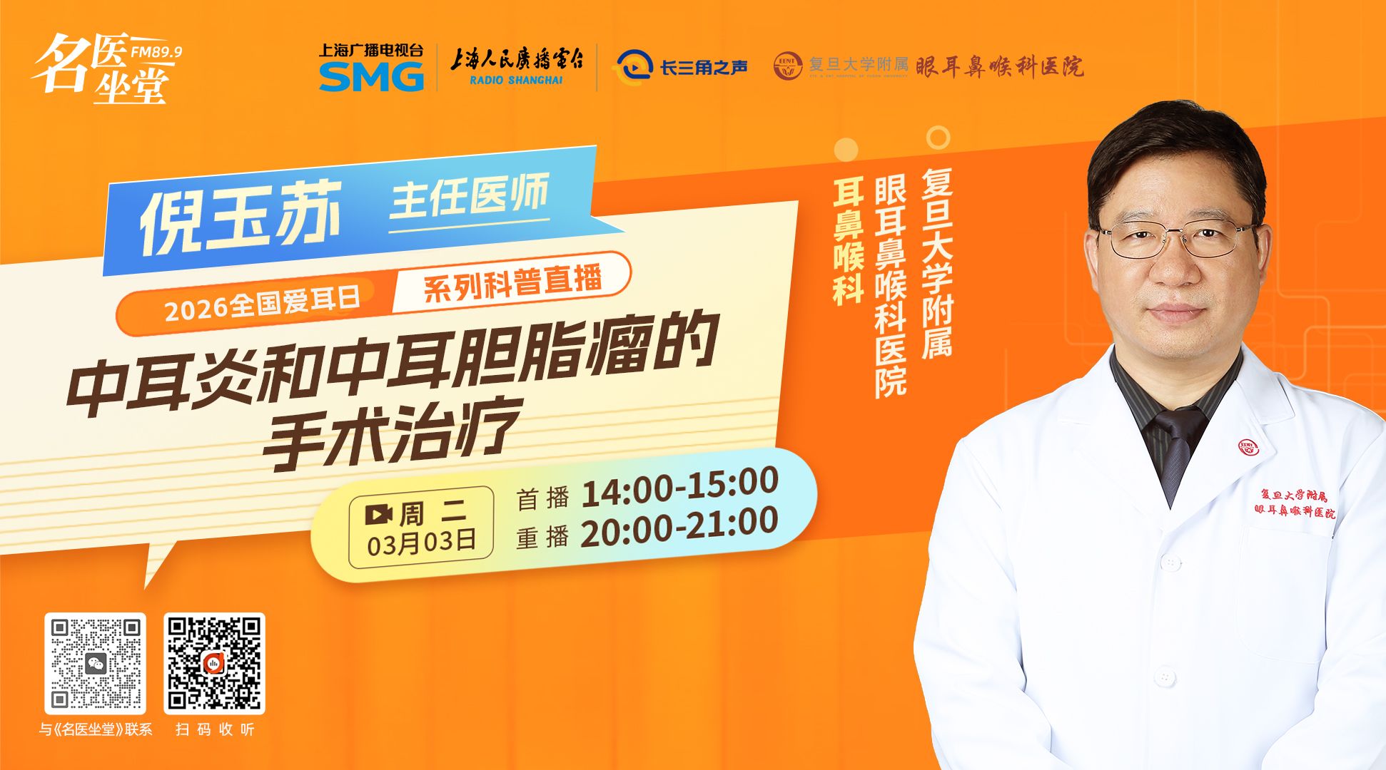 本次是电台健康科普访谈,邀请复旦大学附属眼耳鼻喉科医院耳鼻喉科专家倪玉苏主任医师科普中耳炎、中耳胆脂瘤的疾病知识,解答听众提问,给出诊疗与手术建议。