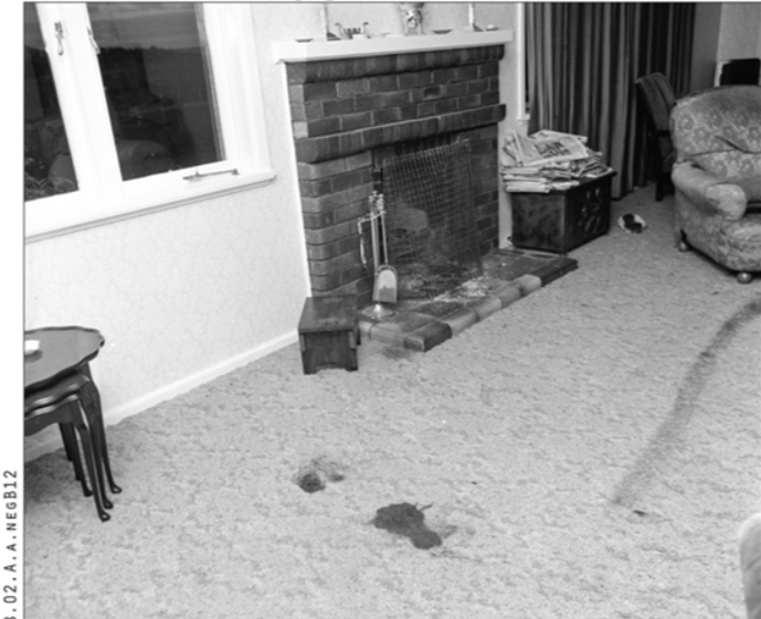 (客厅壁炉旁的血迹 摄于1970年6月22日)