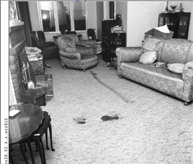 (客厅地毯上的血迹 摄于1970年6月22日)