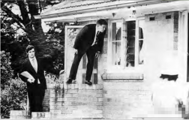 (皇家检察官大卫·莫里斯站在女儿墙上观察凶手可能的射击位置)