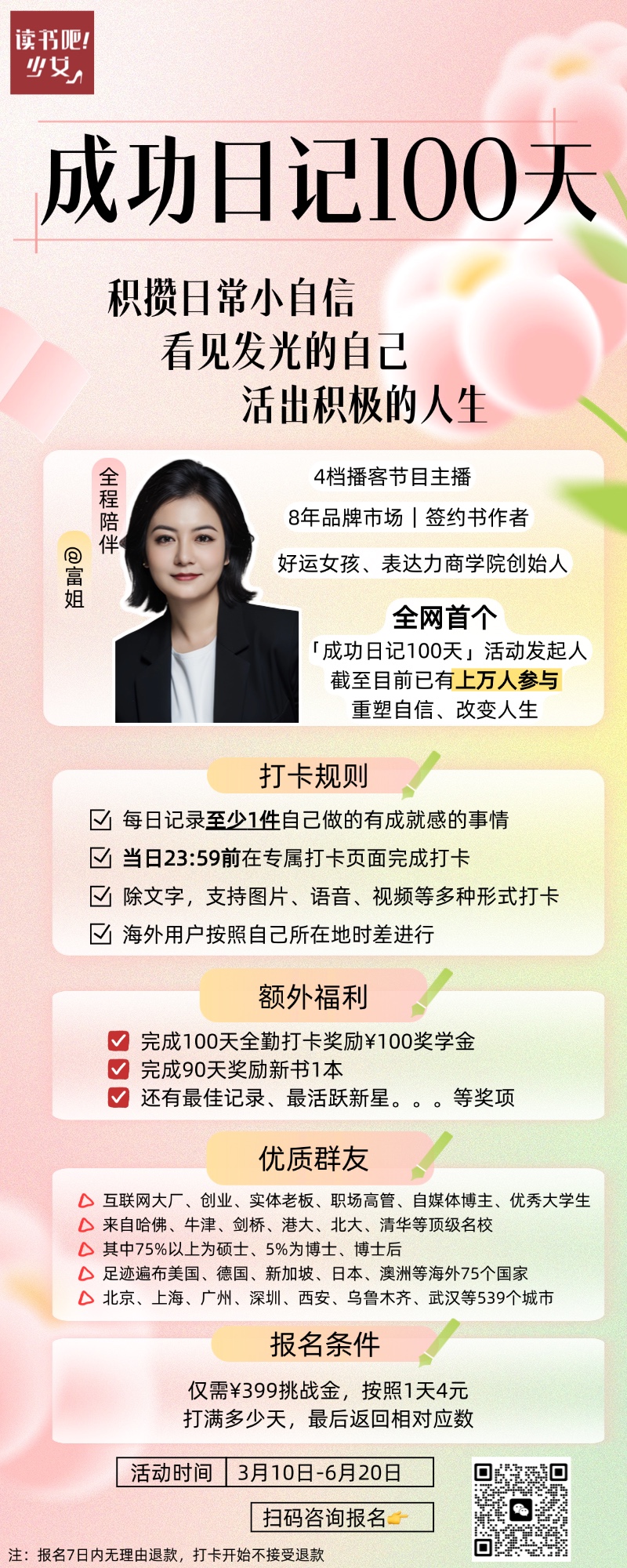 同时,也欢迎你参加「成功日记100天」,一个能帮助任何人(无论你是谁、什么年龄、什么背景)建立积极自信人生的实用工具。