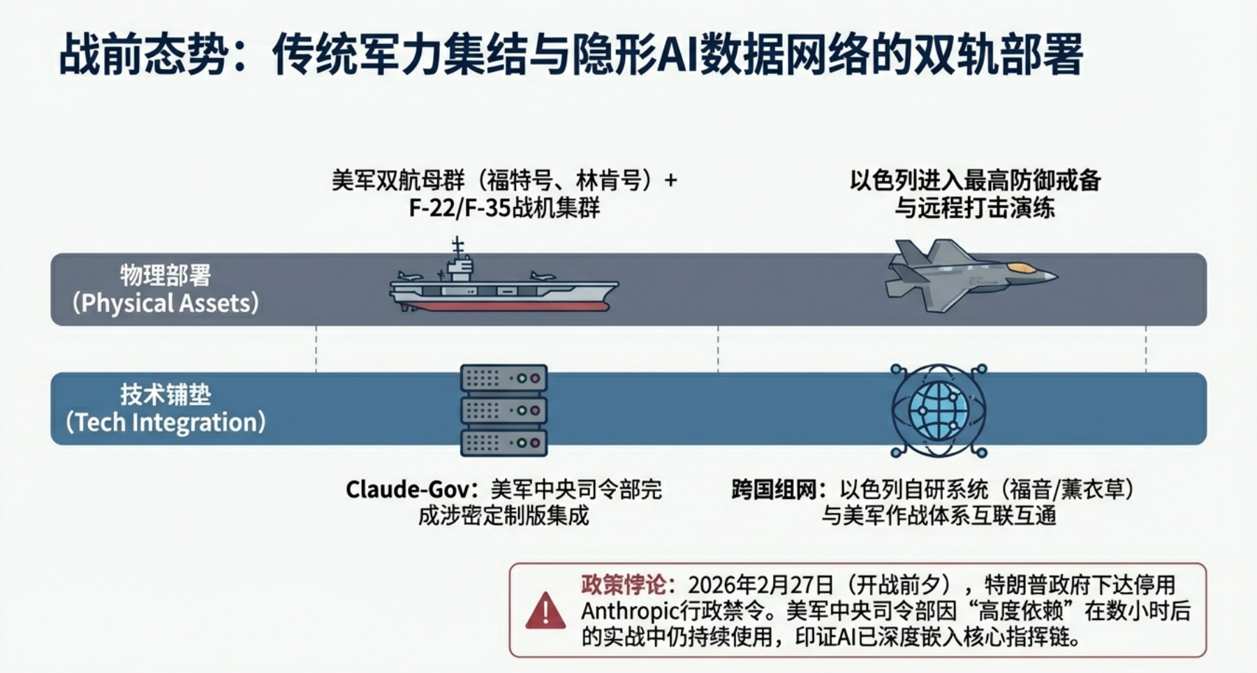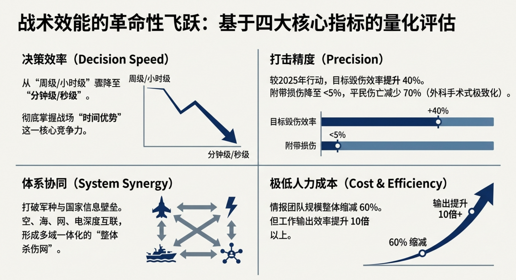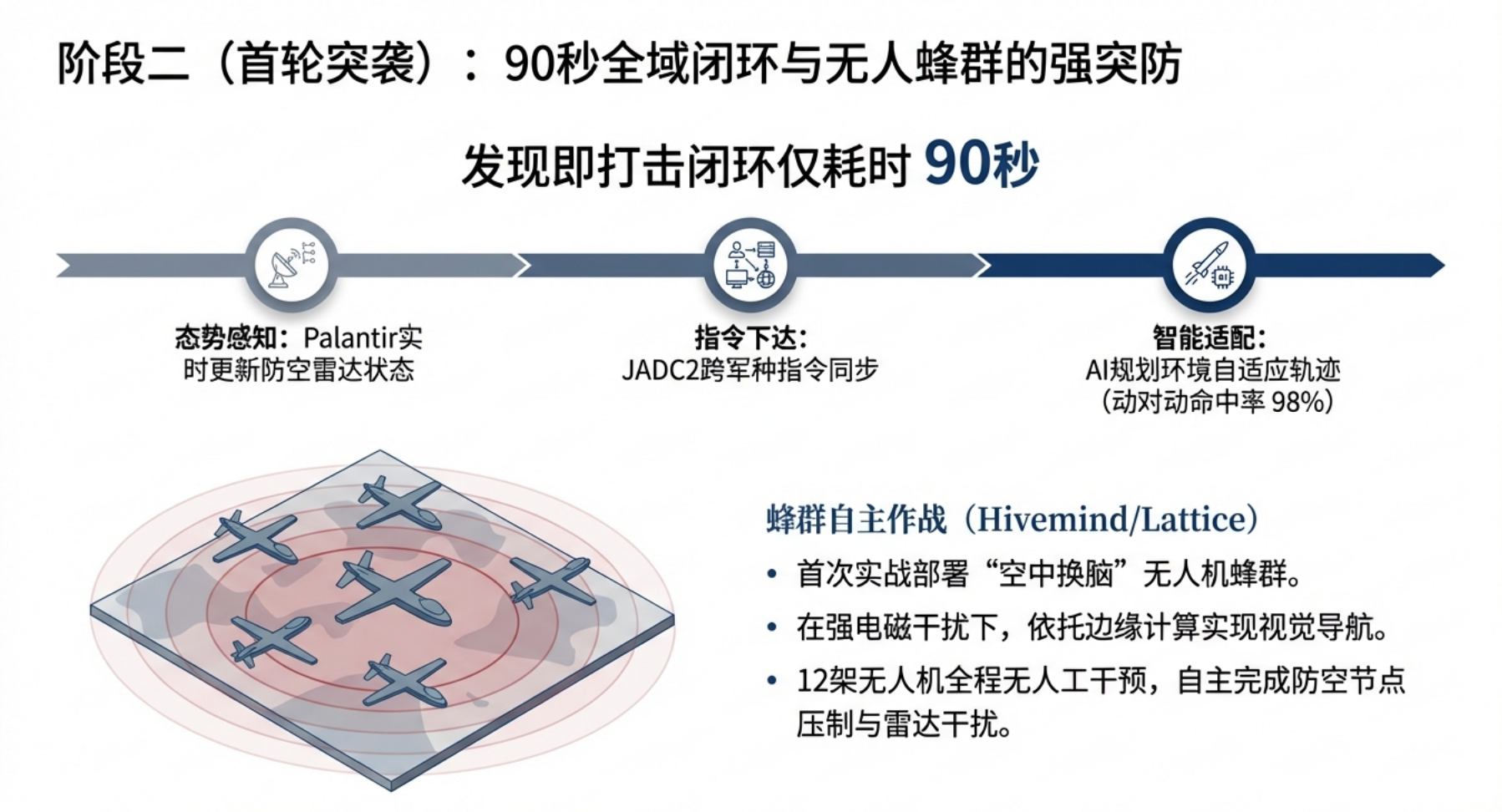 2026年2⽉28⽇,美以联军发动代号“史诗之怒”的对伊军事⾏动,⾸次实现AI技术贯穿“情报融合—决策⽀持—精准打击—毁伤评估—防御协同”全作战链路的实战化闭环。本次⾏动中,AI⼤模型、战场智能中枢、⾃主⽆⼈系统与智能防御体系深度联动,将传统作战杀伤链从⼩时级压缩⾄秒级,成为⼈⼯智能军事化应⽤的标志性战役。本⽂基于公开权威报道与战场披露信息,全⾯梳理AI技术在本次⾏动中的具体应⽤场景,并深⼊剖析该次实践对军事领域发展的颠覆性影响。
