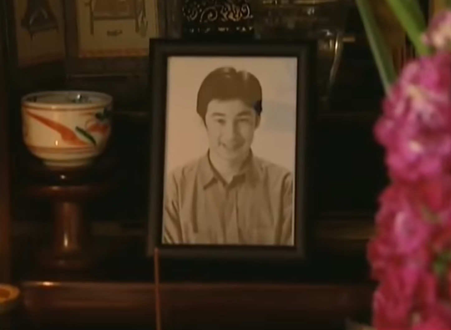 28:08 图:A先生灵龛前摆放的合影照片