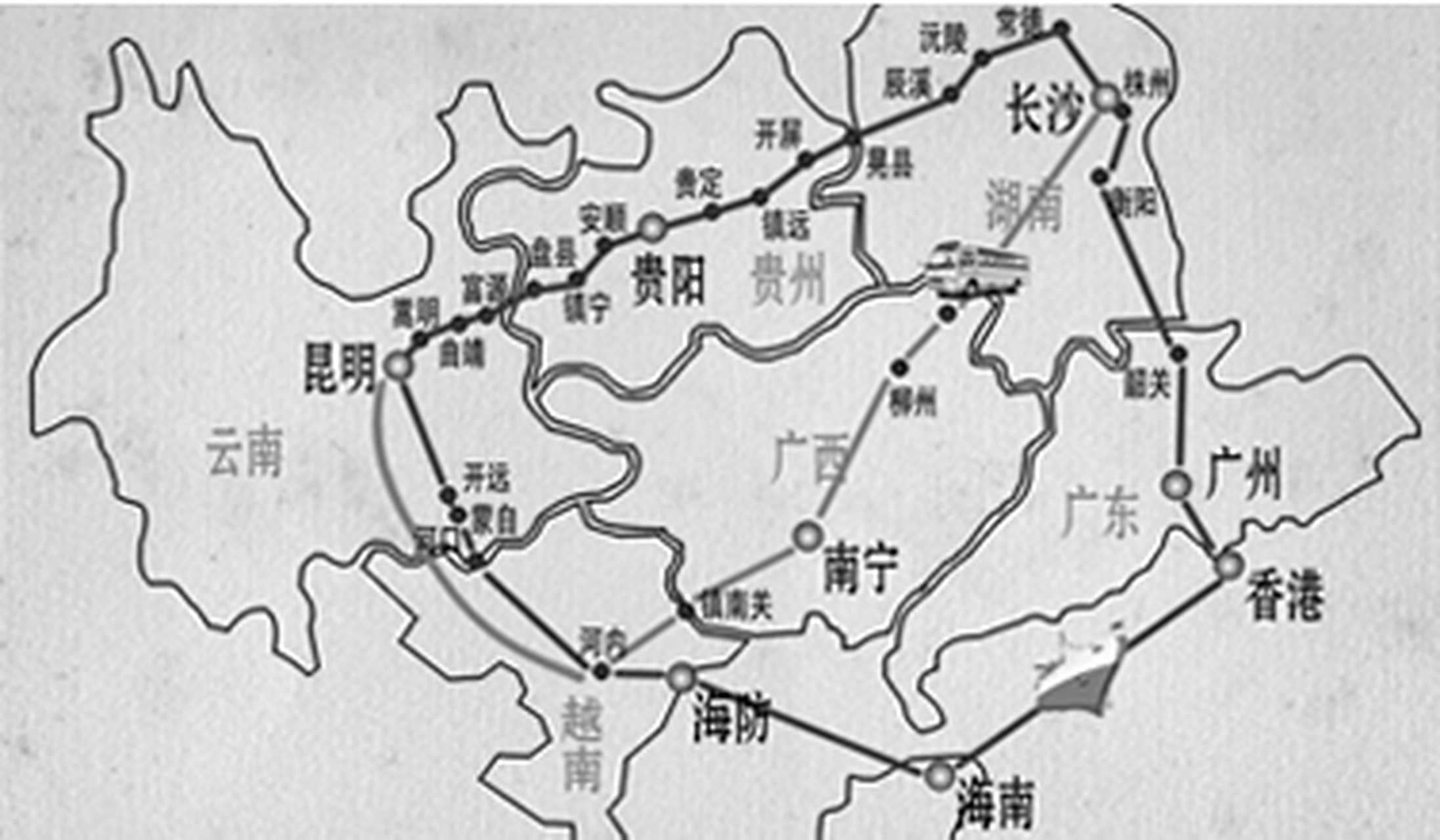 ▼西南联大南迁路线图