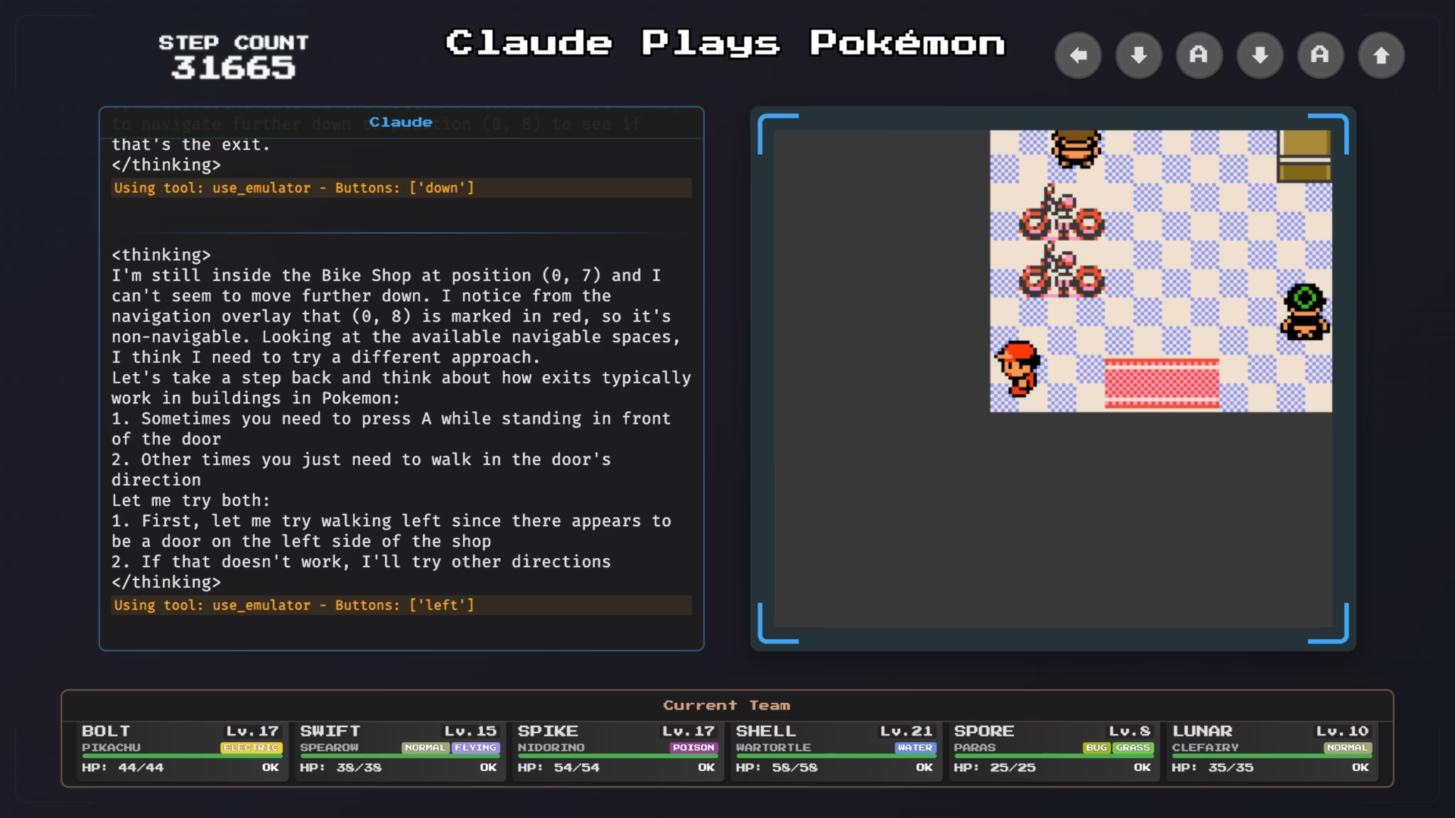 另一款叫「Claude」的 AI 玩《宝可梦》被困在商店里找不到出口
