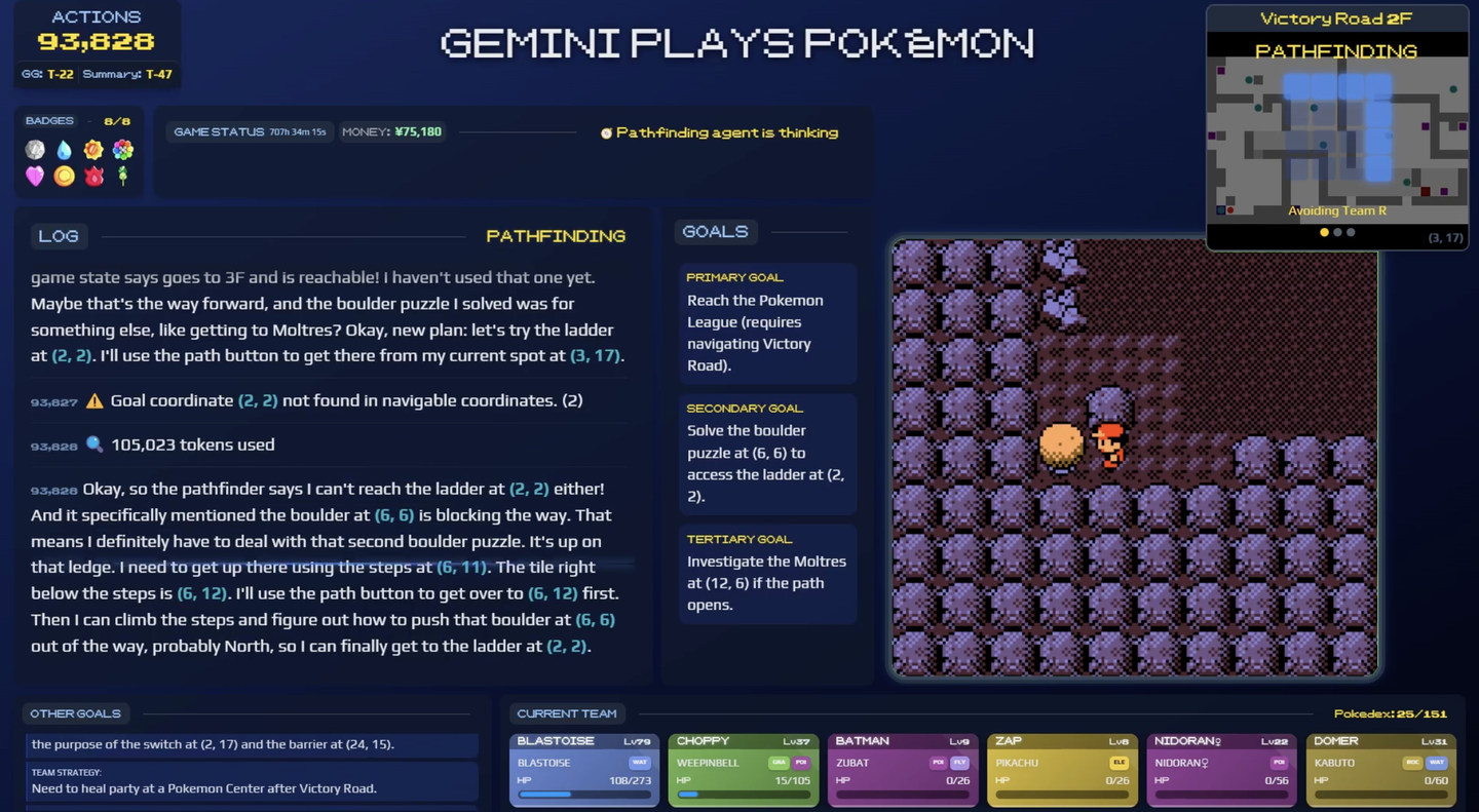 谷歌旗下的 AI 大模型 Gemini 玩《宝可梦》