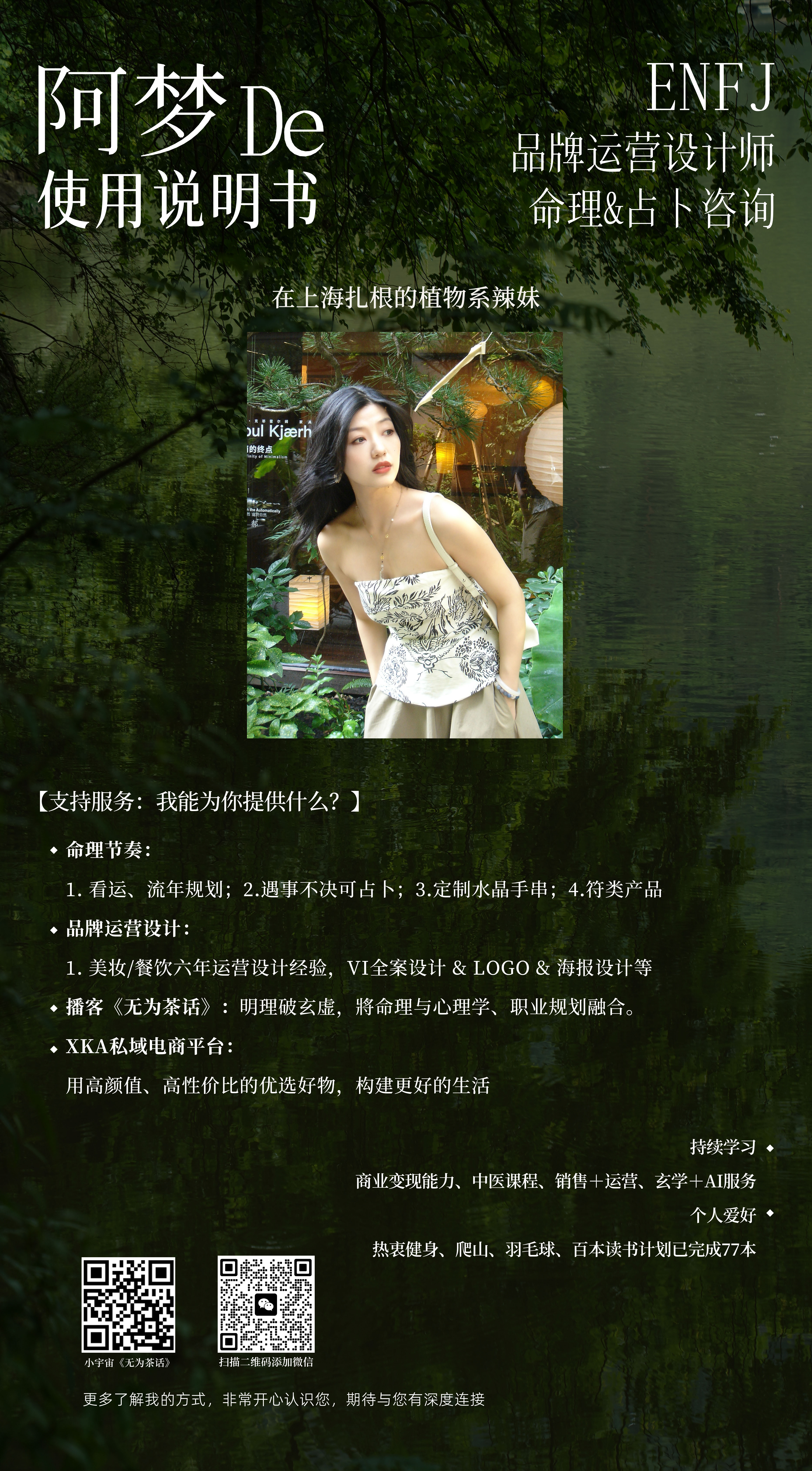 阿梦,ENFJ品牌设计师,命理&占卜咨询师,师从全真龙门派第二十二代传人,播客《无为茶话》主播