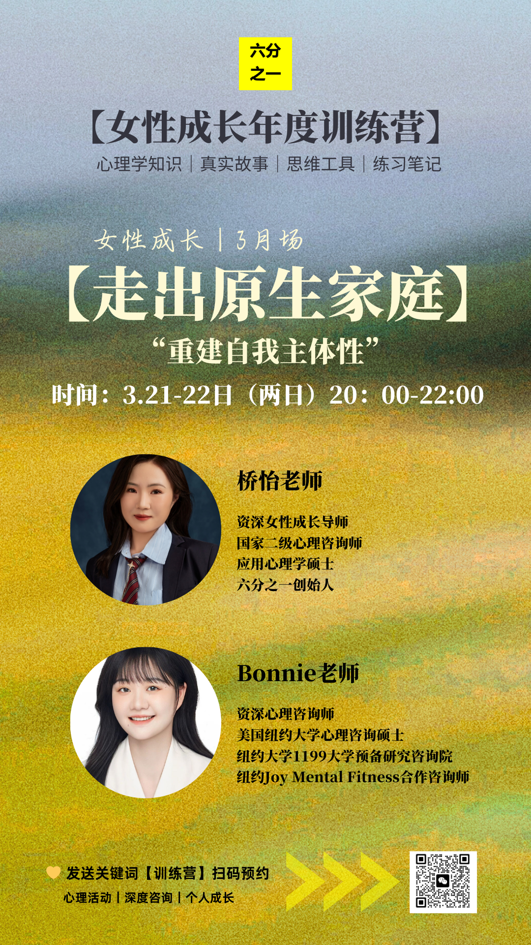 💛3月场【女性成长训练营】主题【走出原生家庭:重建自我主体性】