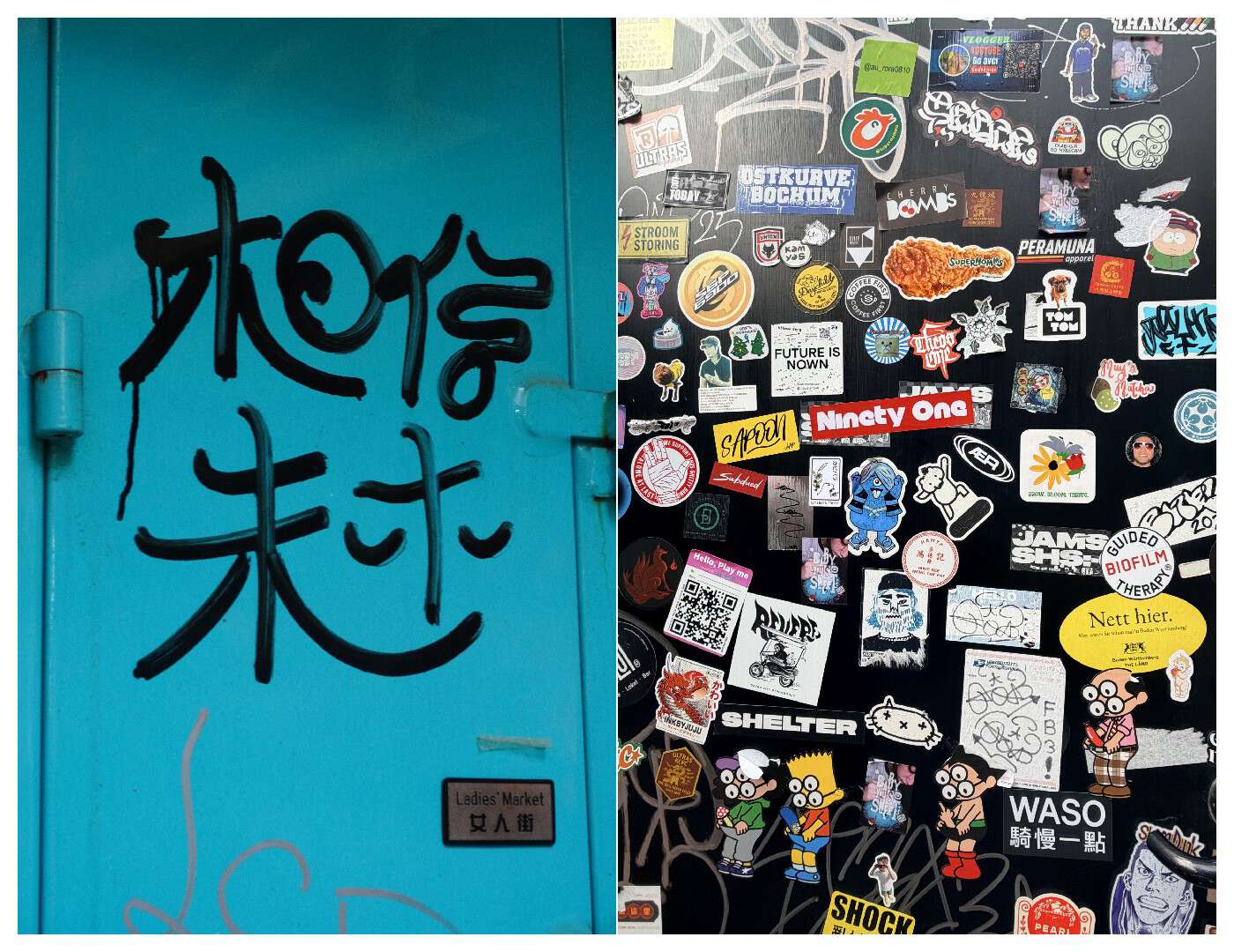 在香港街头乱走像是在玩寻宝游戏,比如我们发现鸭巴甸路牌上那个宽扁的“巴”字,藏着香港“异体字”的历史;上环街市里一块读音像钱币的手写招牌,是老板的个人趣味;渠王的涂鸦从真实广告变成当代艺术,悄悄长在城市的各个角落。