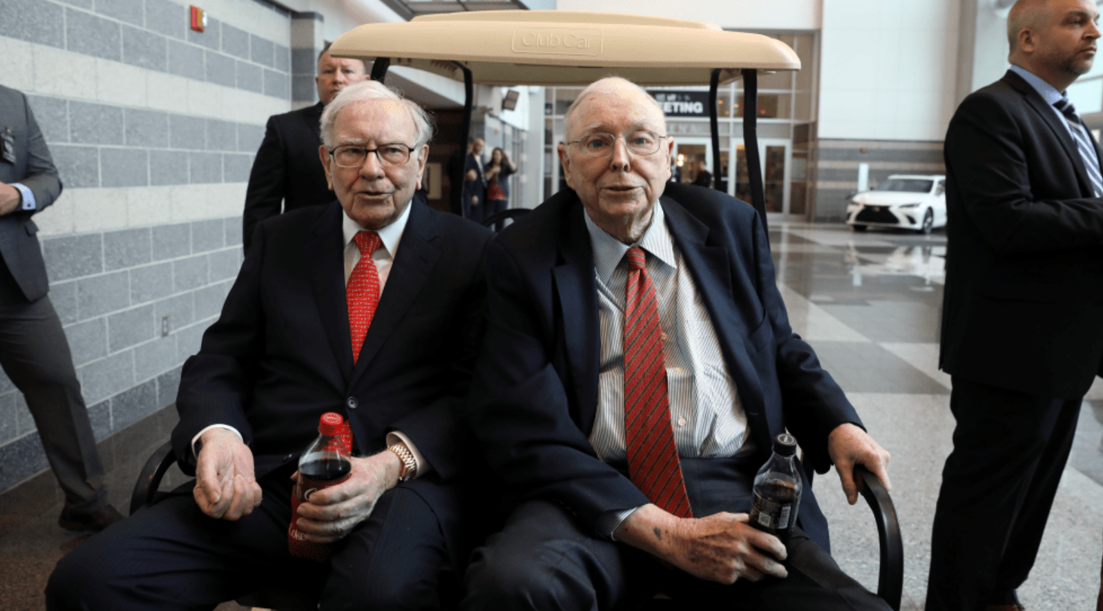 2019年,芒格与巴菲特出席伯克希尔哈撒韦股东会,两个人手里都拿着自己爱喝的可乐。