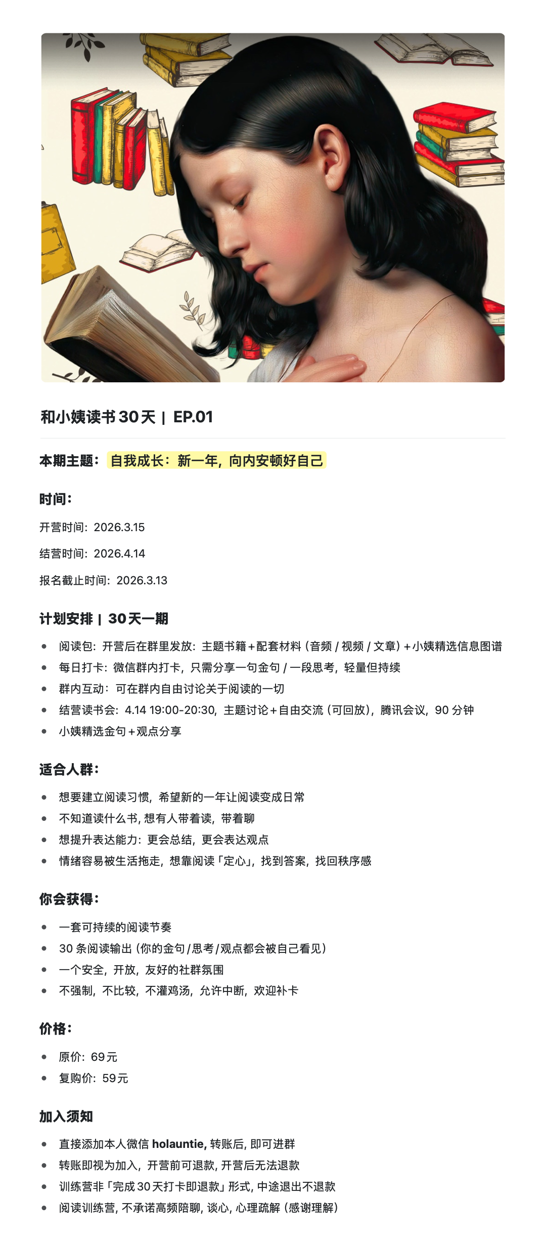 📖 【和小姨读书30天】读书营招募啦!🎉