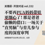 在新生儿出生人数跌破800万大关、性别意识深度觉醒的当下,“育儿”已从家庭内部的琐事跃升为具有高度张力的社会议题。当下的父职不再是缺位后的偶然回归,而是一场在数字景观、职业瓶颈与自我实现之间的多重博弈。本期《三侠大爸》播客,通过一场深度“坦白局”,撕开了社交媒体上被精致滤镜包裹的“完美育儿”假象,直击父职觉醒中的阵痛与结构性红利。