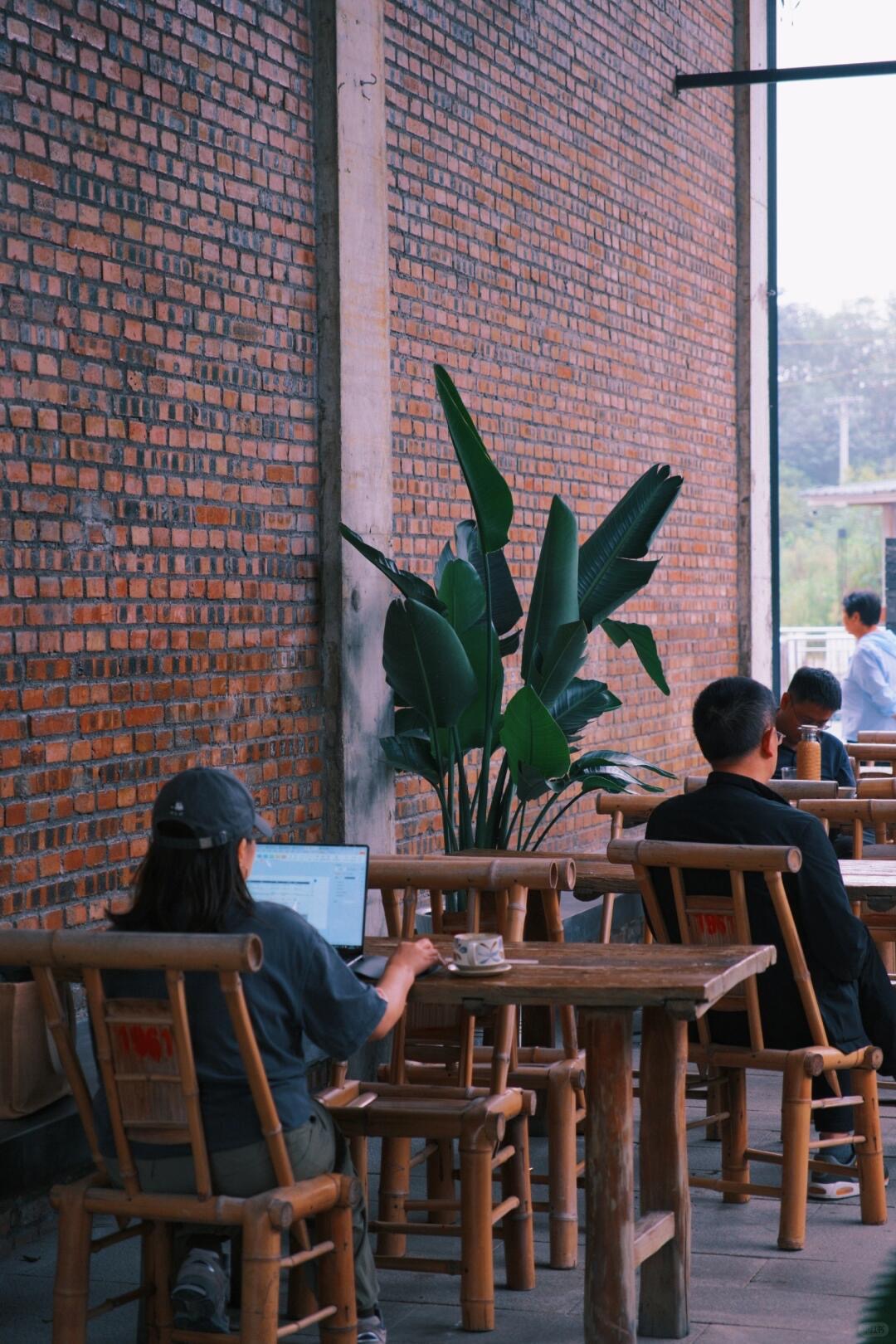 三湔(jian)咖啡一隅,具有鲜明当地特色的竹椅