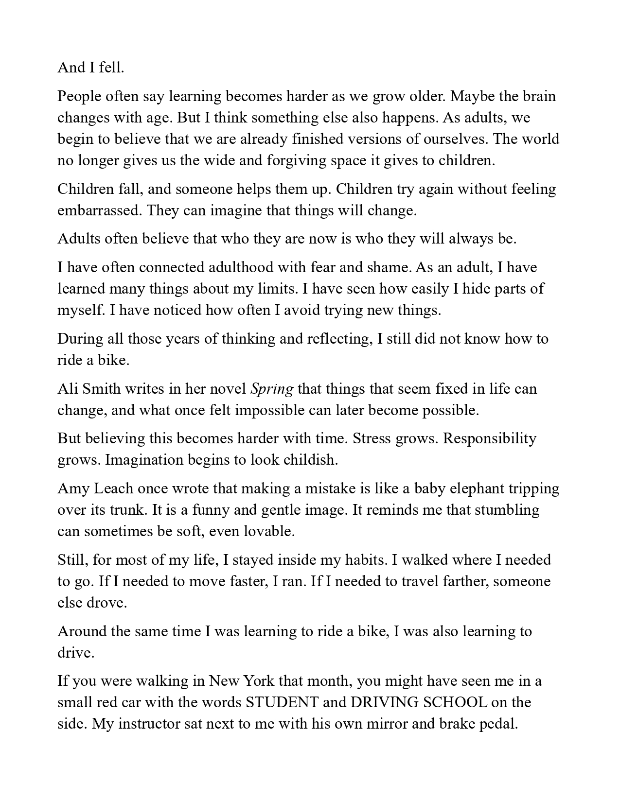 Original Essay: Stumbling Can Be Lovely by Devin Kelly; March 7, 2024