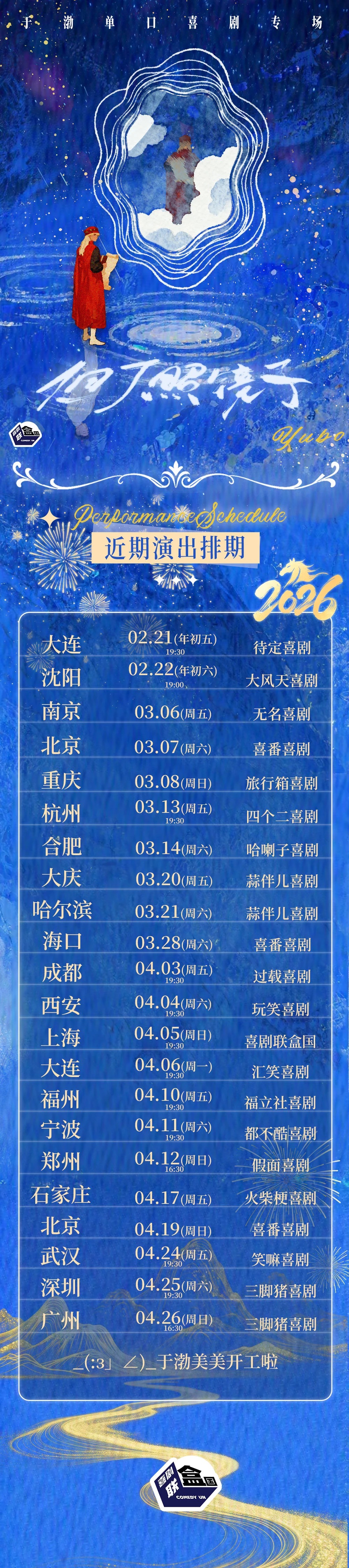 于渤单口喜剧专场《但丁照镜子》正在全国巡演中,如果来到你的城市,千万别错过。
