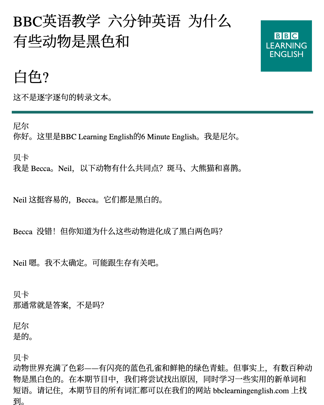 Why are some animals black and white?(20260305)