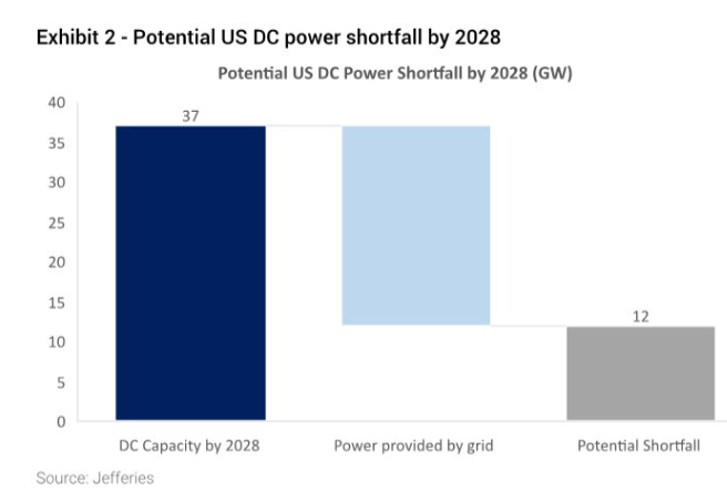 全球数据中心电力需求的爆发式增长,是潍柴动力迎来新机遇的核心背景。研报中Exhibit 2(Potential US DC power shortfall by 2028) 清晰显示,受电网扩张滞后于AIDC需求激增的影响,2028年美国数据中心将面临12GW的结构性电力缺口,这也直接催生了数据中心备用及主用动力设备的巨大需求。
