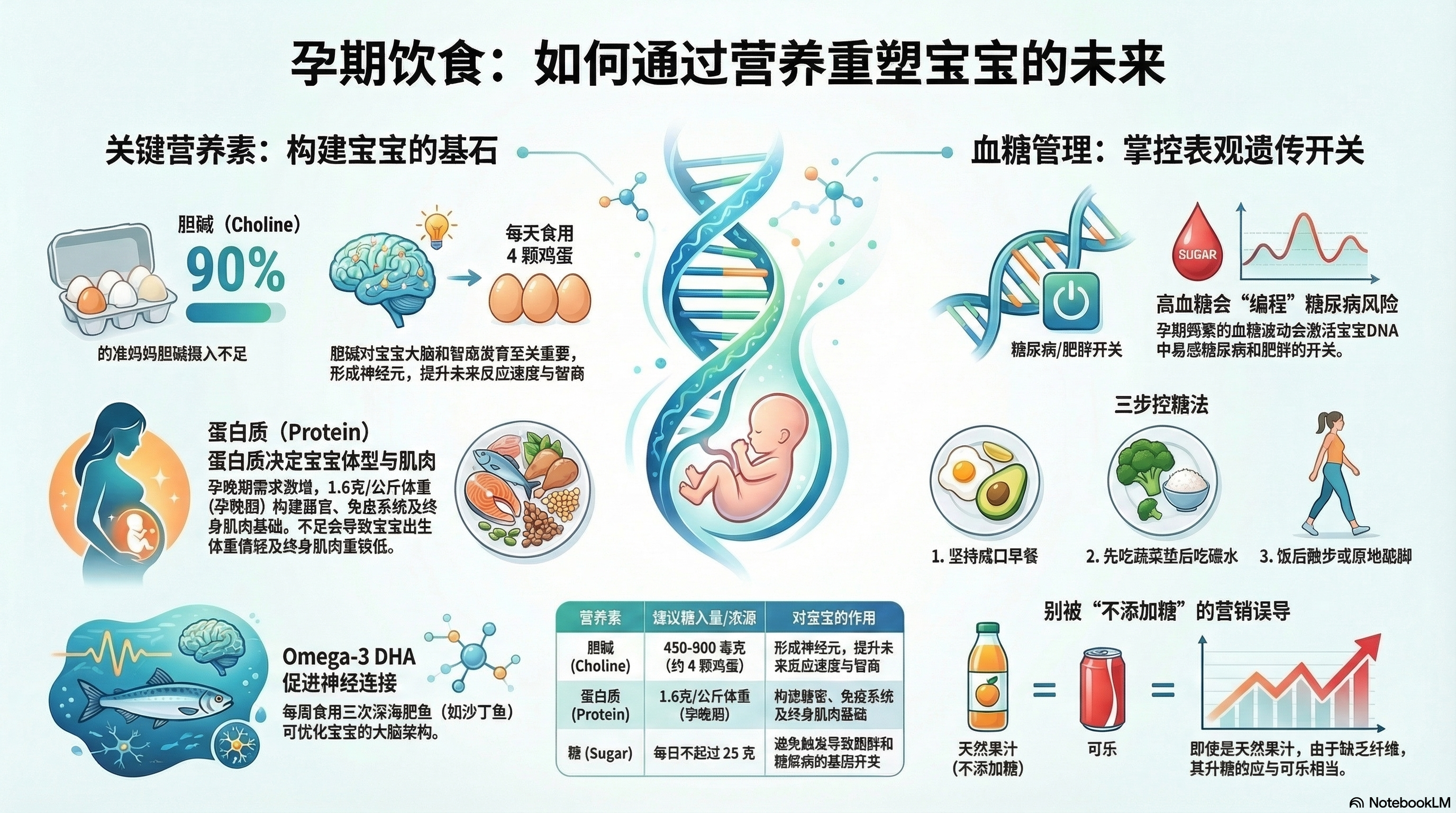 Omega-3 (DHA):只需每周吃几罐平价沙丁鱼,就能极大促进胎儿大脑神经元的高效连接。 - 果汁与可乐的残酷真相:一杯鲜榨橙汁和一罐可口可乐含糖量完全相同(25克),抛弃唯卡路里论,教你如何直接看成分表,识破“无添加糖”、“纯素”等食品营销话术的欺骗性。